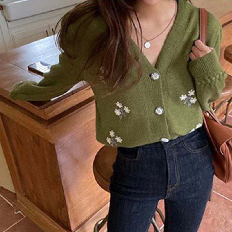 【韓国ファッション】大人可愛い スタンダードVネックルーズニットカーディガンセーター レディース ロング レッド レトロ 刺繍 フラワーデザイン ♡ 韓国16750476768 | パリジェンヌ、韓国系ファッション July