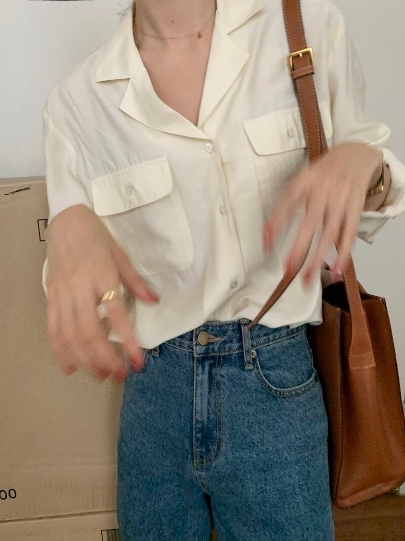 【韓国ファッション】大人可愛い オータムスタンダードダブルポケットカジュアルルーズシャツ トップス レディース レトロ 秋物 ♡ 韓国51410478217 | パリジェンヌ、韓国系ファッション July