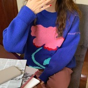 【韓国ファッション】大人可愛い オータムウィンタースタイルFlowerデザイン ラウンドネックプルオーバー ルーズニットセーター レディース ロング 秋物 冬物 Oネック フラワーデザイン ♡ 韓国9210867809 | パリジェンヌ、韓国系ファッション July