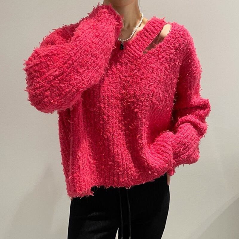 【韓国ファッション】大人可愛い スタンダードスタイルVネックプルオーバー ルーズニットセーター レディース ロング レトロ ♡ 韓国62306153247 | パリジェンヌ、韓国系ファッション July