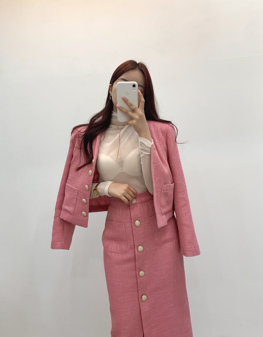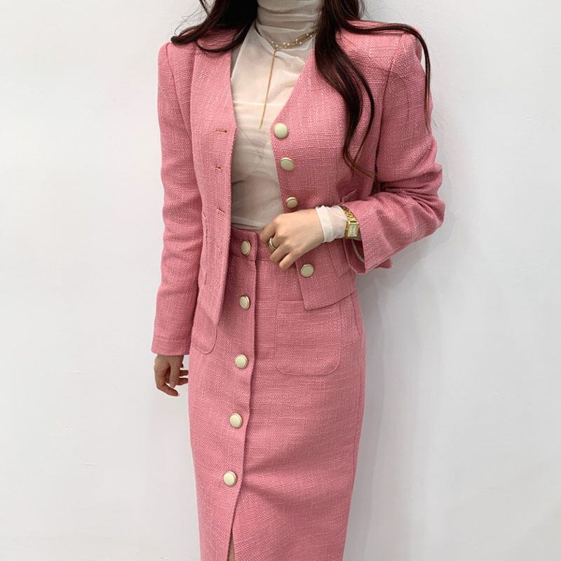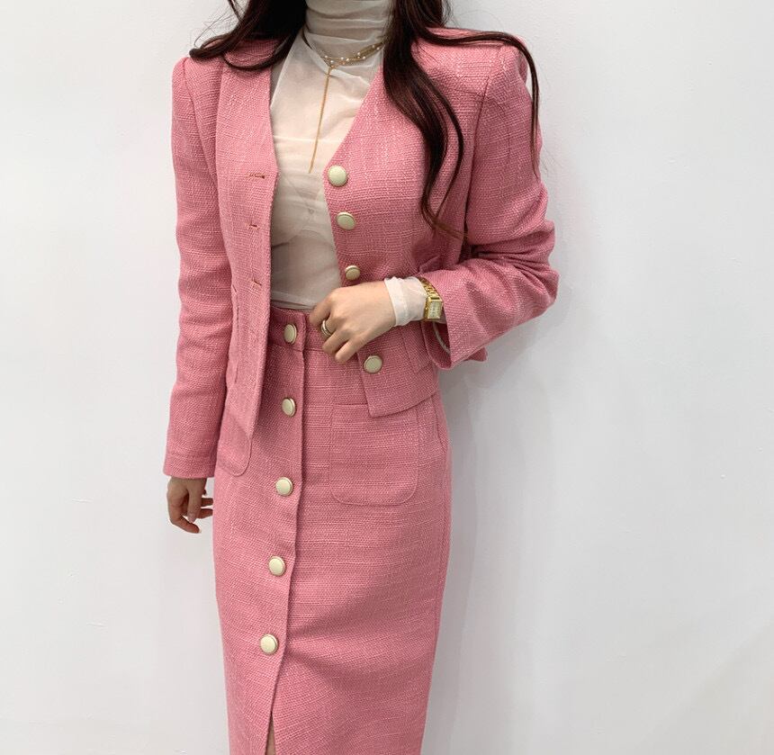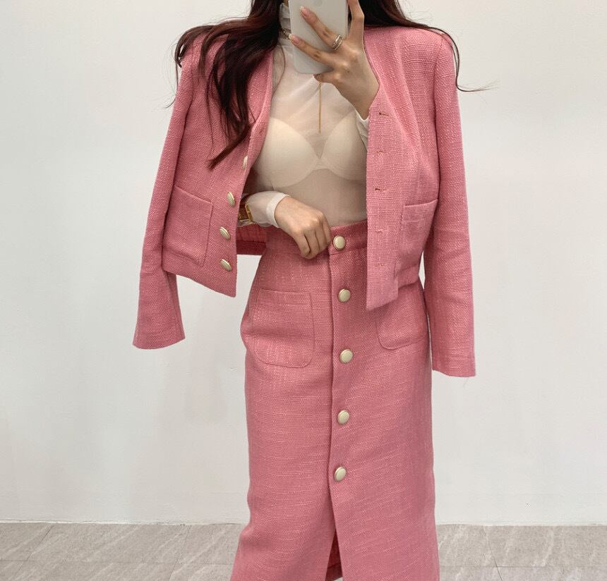 色:アプリコットコート,ピンクのジャケット,アプリコットスカート,ピンクのスカート