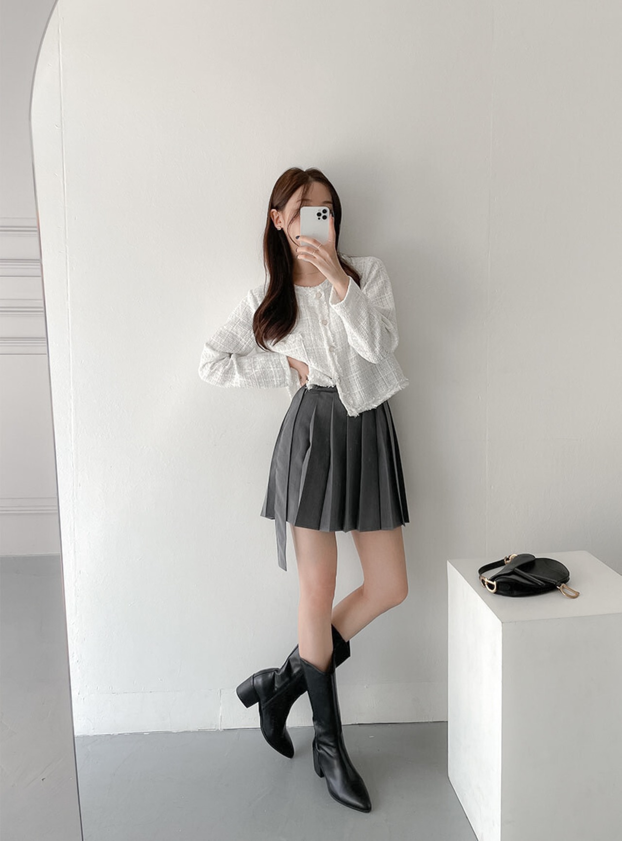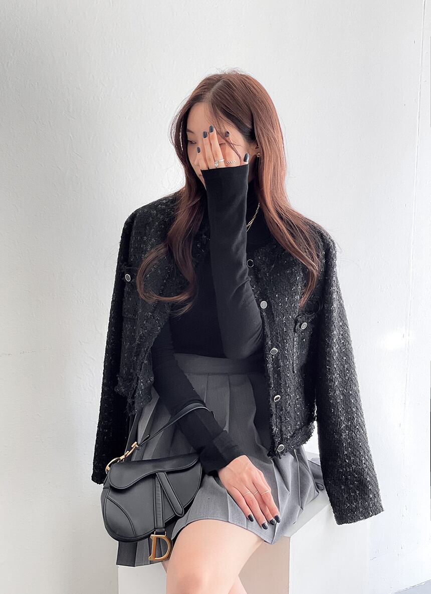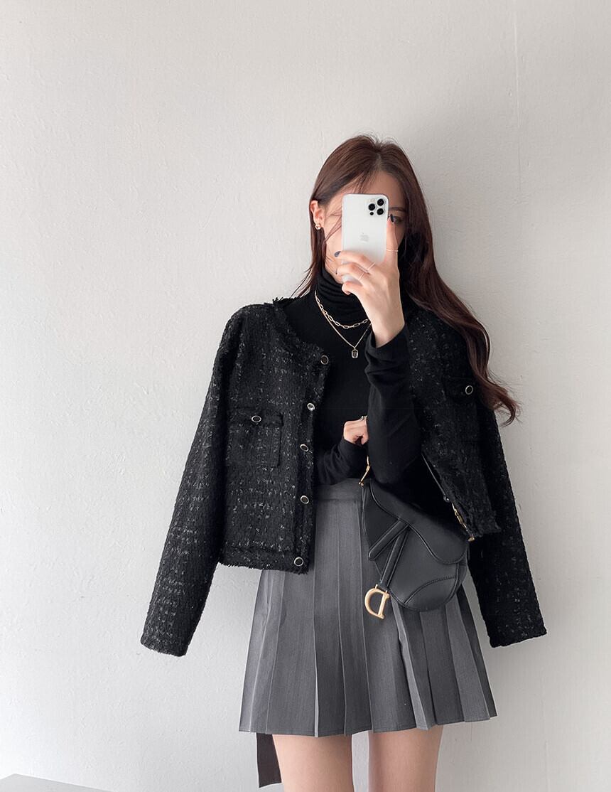 【韓国ファッション】大人可愛い オータムウィンターラウンドネックルーズポケットツィードショートジャケット ロング エレガント 秋物 冬物 Oネック ♡ 韓国30325055410 | パリジェンヌ、韓国系ファッション July