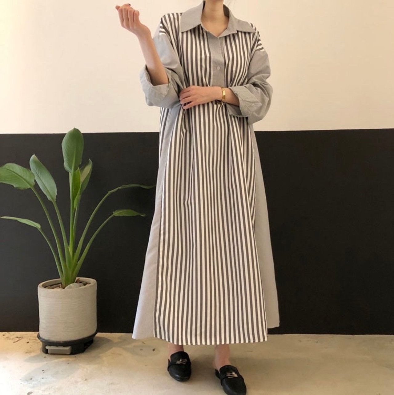 【韓国ファッション】大人可愛い スタンダードカラーストライプウェストロングドレス レディース レトロ レース レースアップ ♡ 韓国94700474779 | パリジェンヌ、韓国系ファッション July