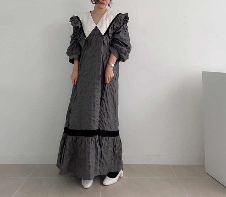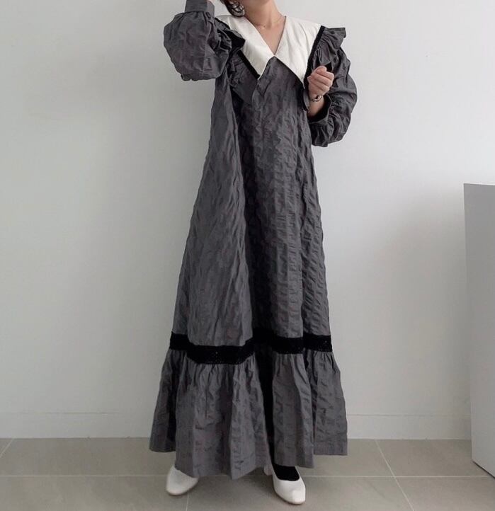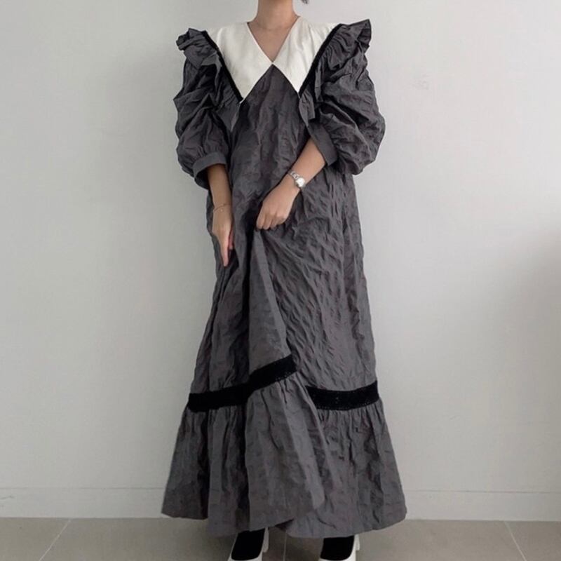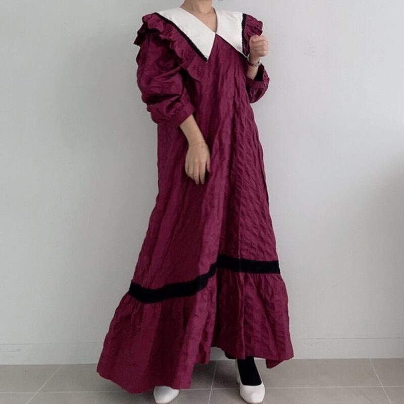 【韓国ファッション】大人可愛い スタンダードスタイルカラールーズロングスリーブドレス レディース レトロ レース ステッチ ♡ 韓国2505666829 | パリジェンヌ、韓国系ファッション July
