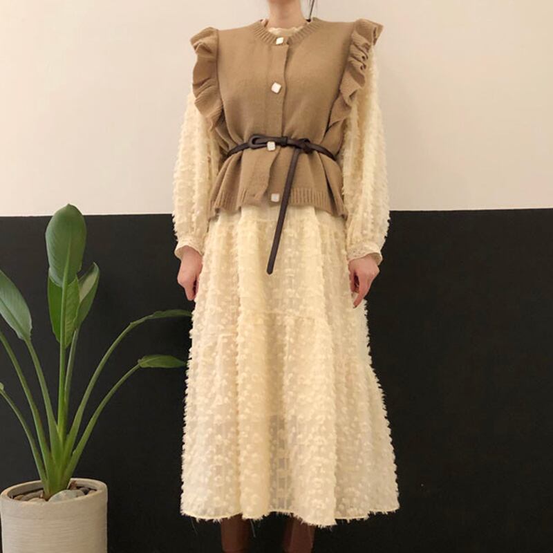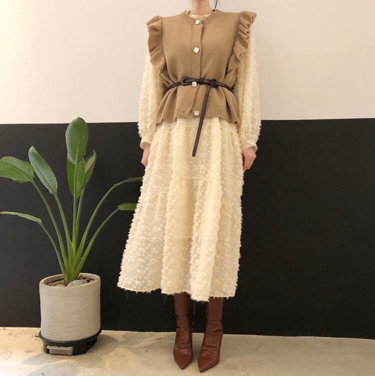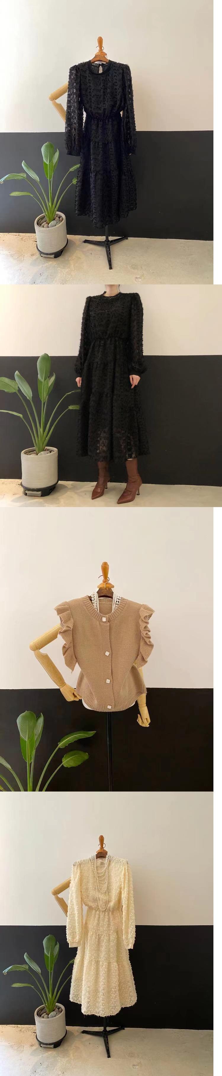 色:アプリコットドレス,黒いドレス,カーキベスト