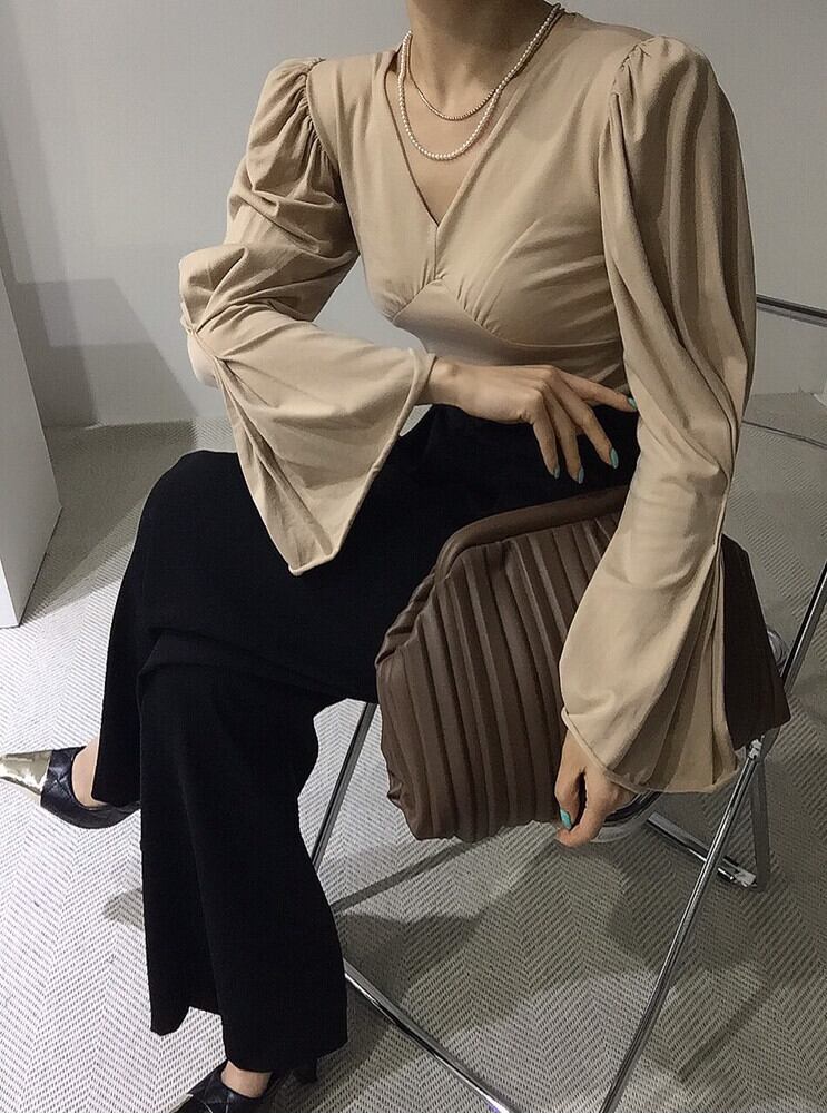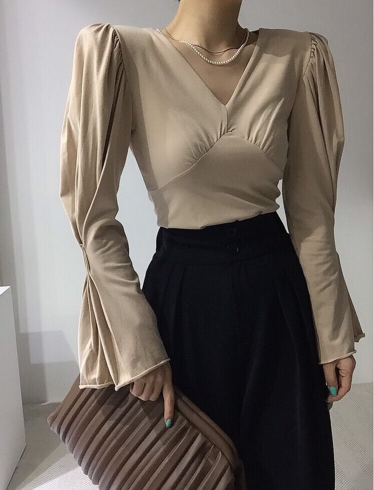 【韓国ファッション】大人可愛い オータムVネックスリムスリーブプルオーバー Tシャツ トップス レディース エレガント 秋物 ♡ 韓国72350736070 | パリジェンヌ、韓国系ファッション July