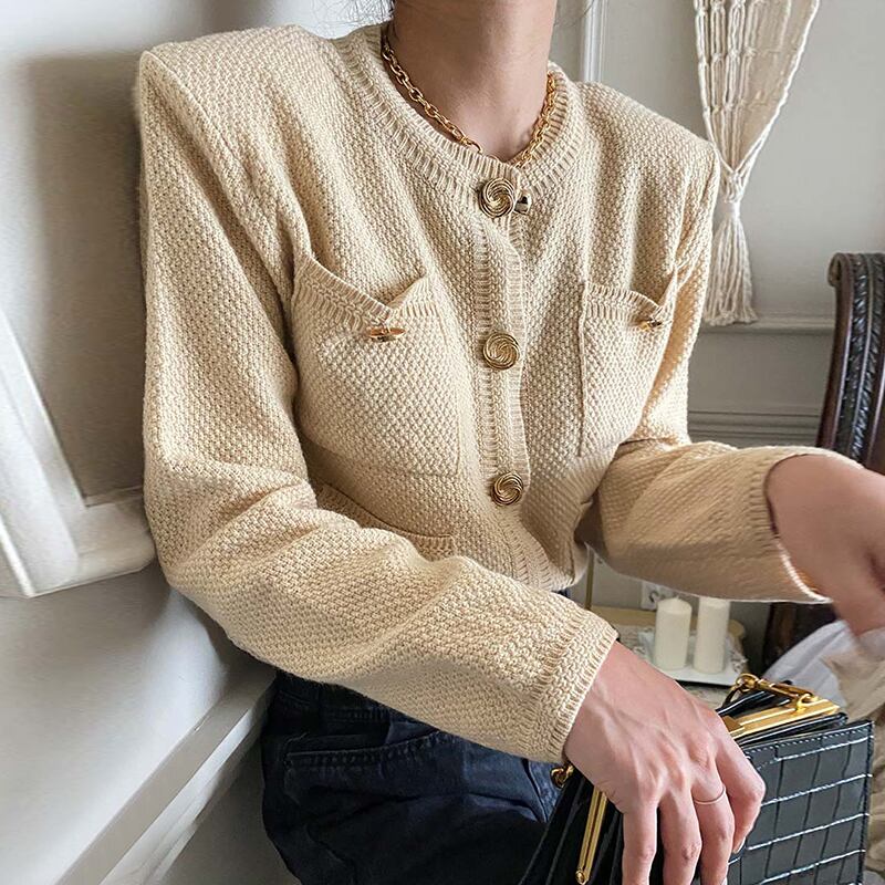【韓国ファッション】大人可愛い ラウンドネックルーズニットカーディガンセーター ジャケット レディース Oネック ポケット多め マルチポケット ♡ 韓国80638766796 | パリジェンヌ、韓国系ファッション July
