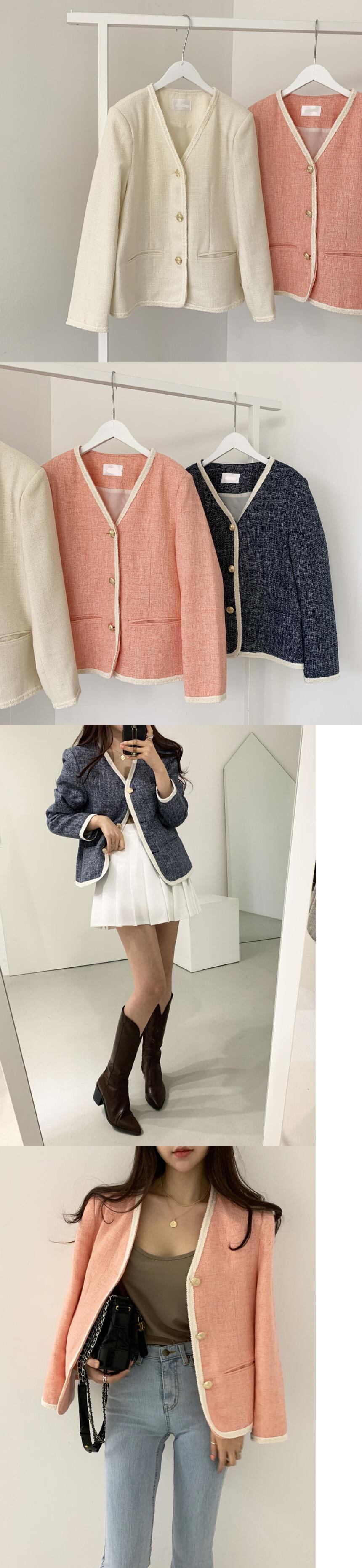 【韓国ファッション】大人可愛い スタンダードVネックカラールーズツィードジャケット ショートコート ロング レトロ エレガント ♡ 韓国63551333910 | パリジェンヌ、韓国系ファッション July