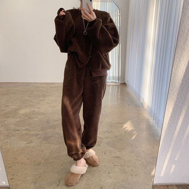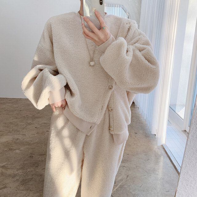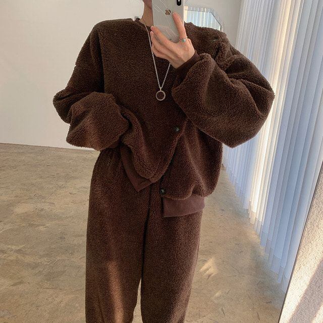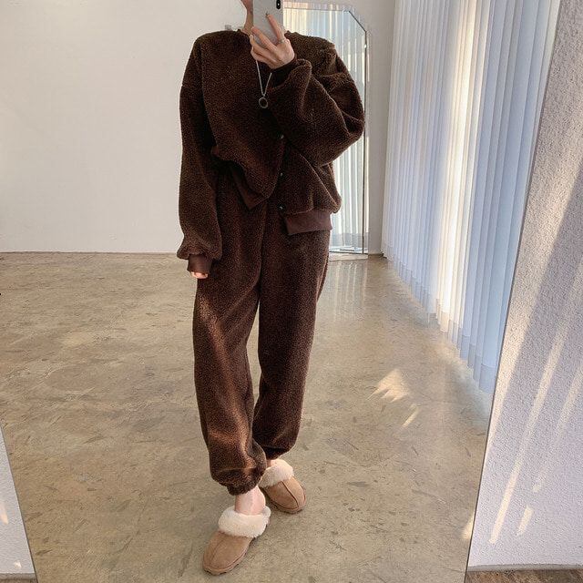色:ベージュトップ,ベージュパンツ,コーヒートップ,コーヒーカラーパンツ