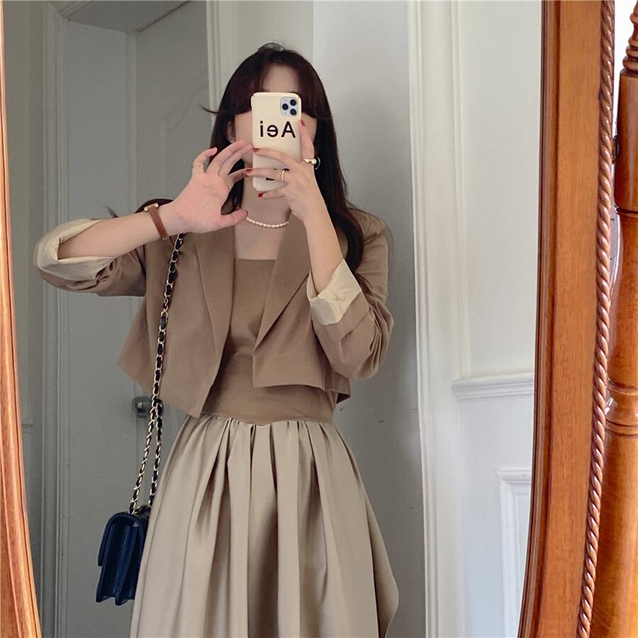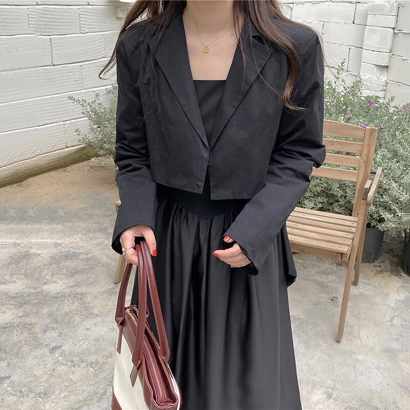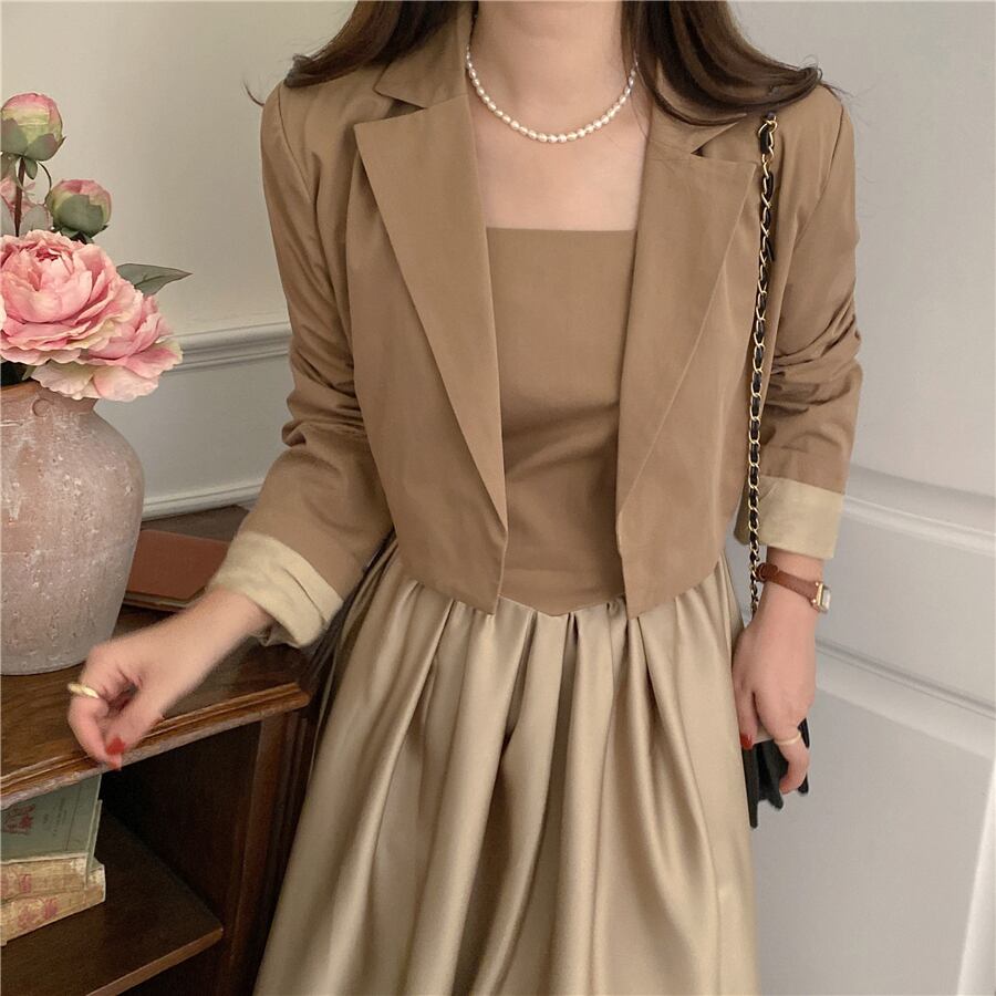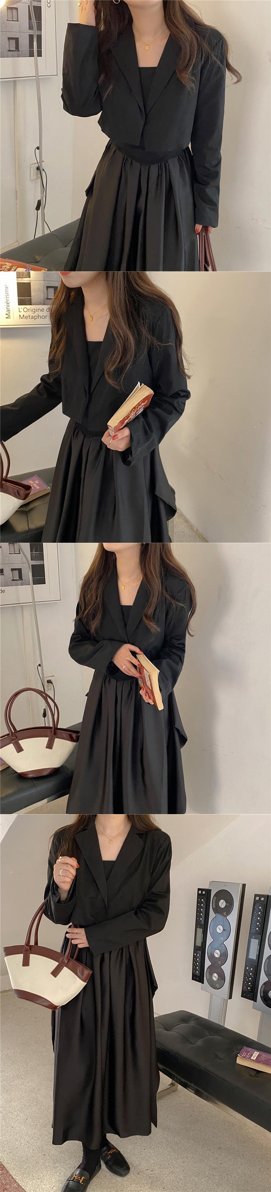 色:アプリコットコート,黒いジャケット,アプリコットドレス,ブラックサスペンダースカート
