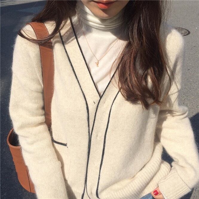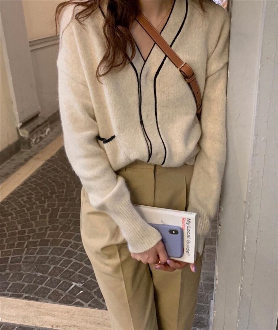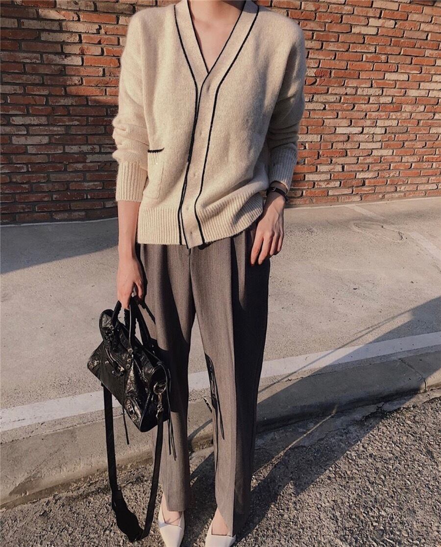 【韓国ファッション】大人可愛い オータムスタンダードVネックラインカラーサイドポケットニットセーター ロング レトロ 秋物 ♡ 韓国45104067756 | パリジェンヌ、韓国系ファッション July