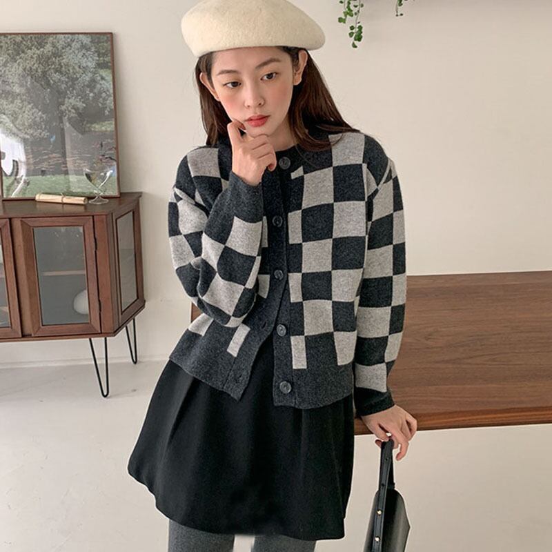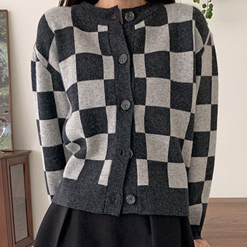 【韓国ファッション】大人可愛い スタンダードラウンドネック格子柄ルーズニットカーディガンセーター ジャケット レディース ロング レトロ Oネック ♡ 韓国2157133757 | パリジェンヌ、韓国系ファッション July