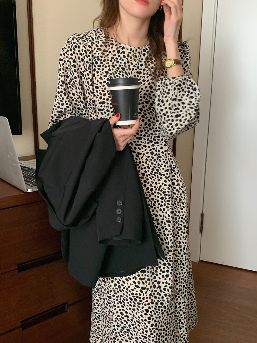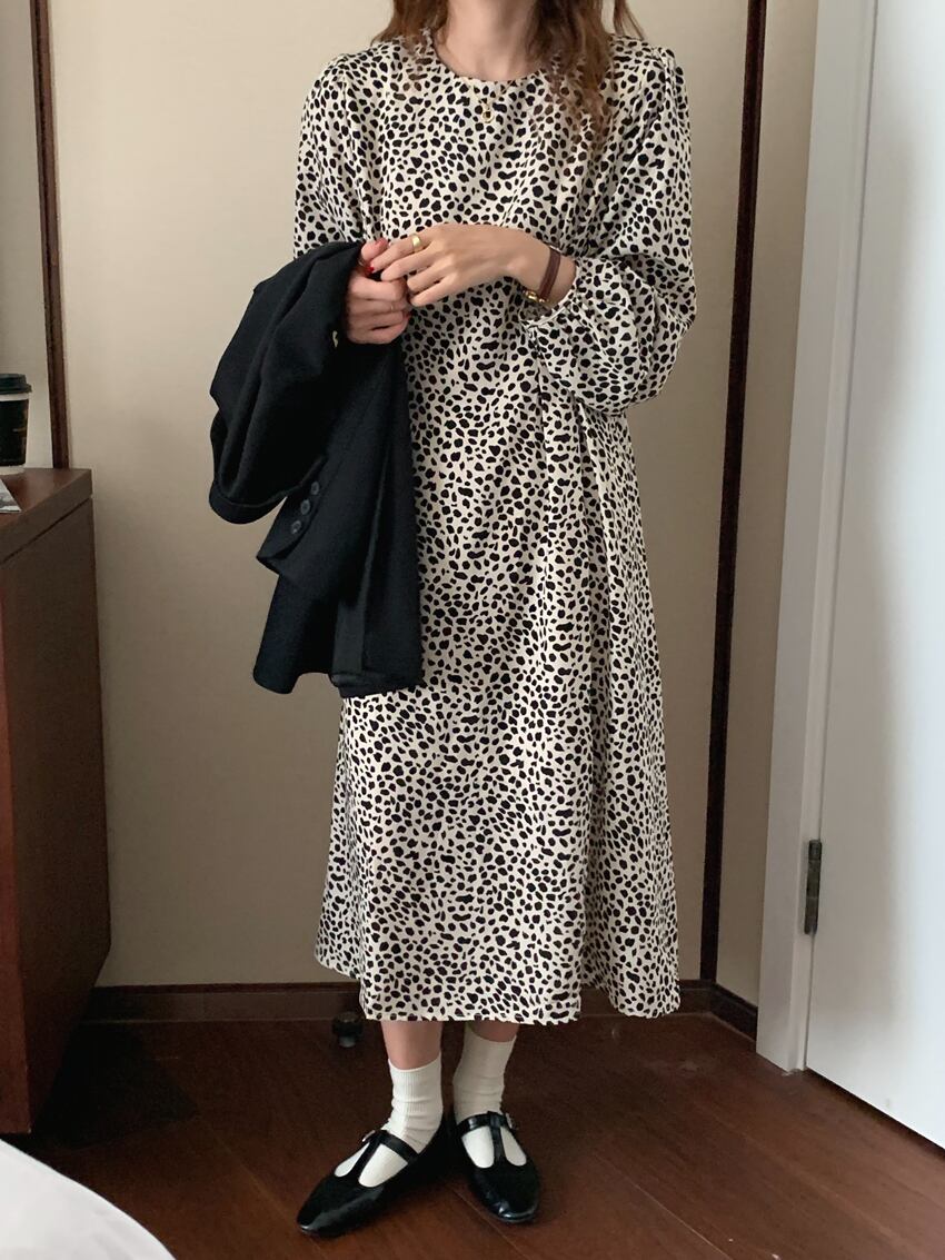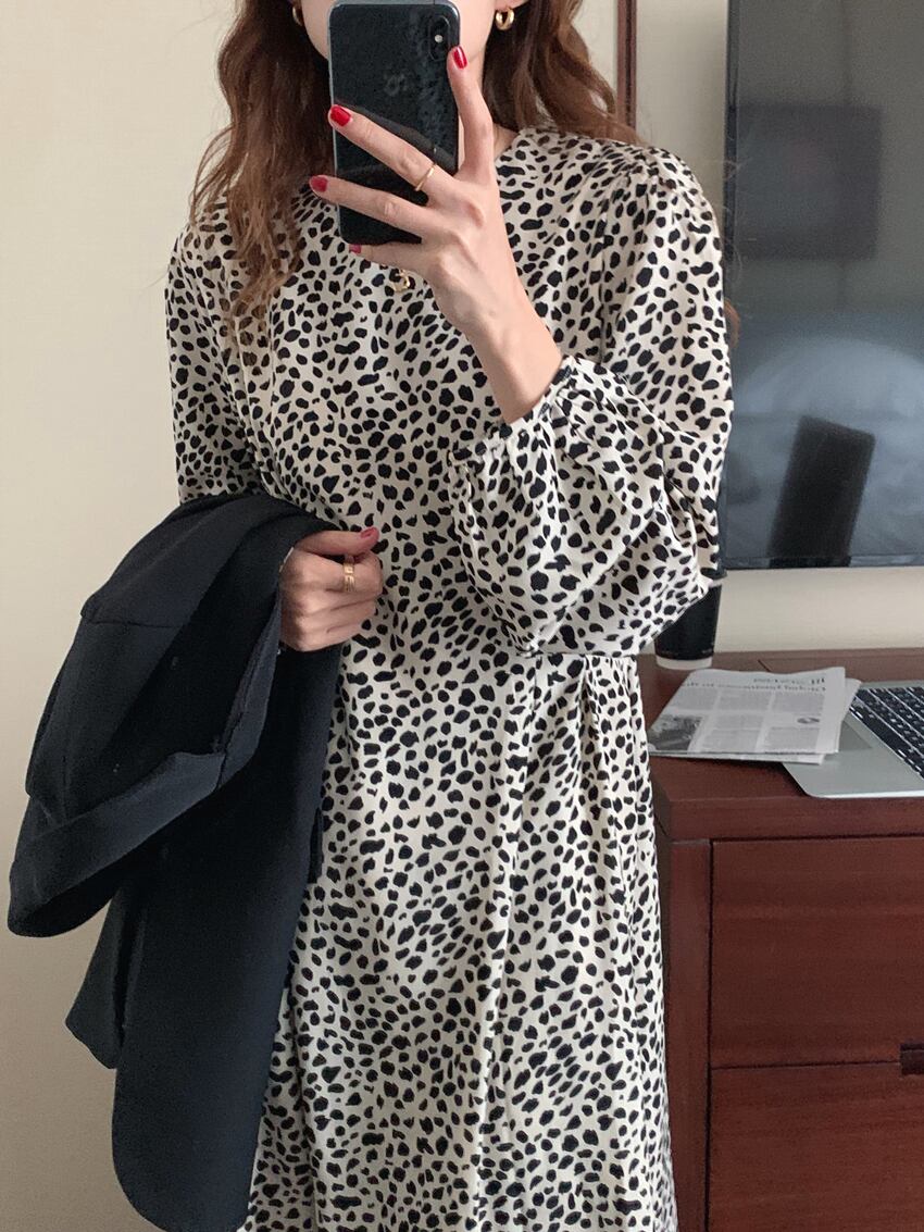 【韓国ファッション】大人可愛い オータムスタンダードラウンドネックレオパードプリント柄ウェストスリーブドレス レディース レトロ レース 秋物 Oネック レースアップ ♡ 韓国82160576182 | パリジェンヌ、韓国系ファッション July