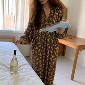 韓国服 シフォンフローラルドレス オータムスタイルスタンダードVネックルーズハイウェストウェストスリムロングスカート レトロ 秋物 花柄 ♡ nanfeng38334879737 | パリジェンヌ、韓国系ファッション July