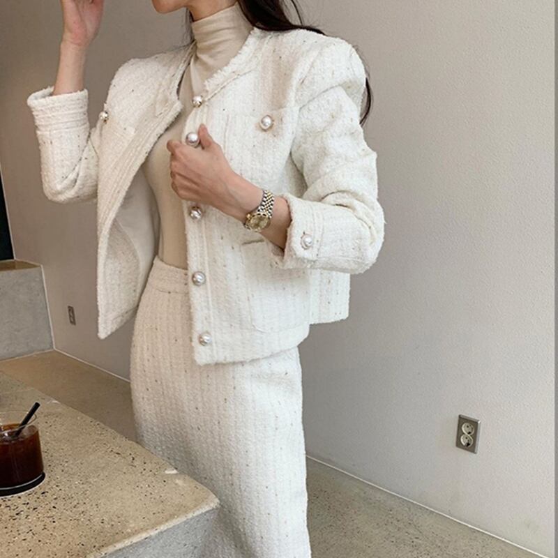【韓国ファッション】大人可愛い ツィードショートコート ハイウェストウェストスカート ロング エレガント ポケット多め マルチポケット ♡ 韓国82591106620 | パリジェンヌ、韓国系ファッション July
