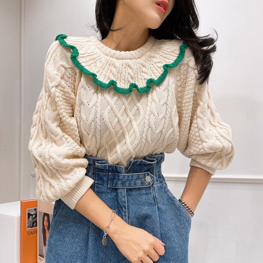 【韓国ファッション】大人可愛い スタンダードスタイルカラープルオーバー パターンルーズスリーブニットセーター レディース レトロ ♡ 韓国45479656418 | パリジェンヌ、韓国系ファッション July
