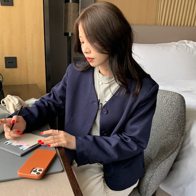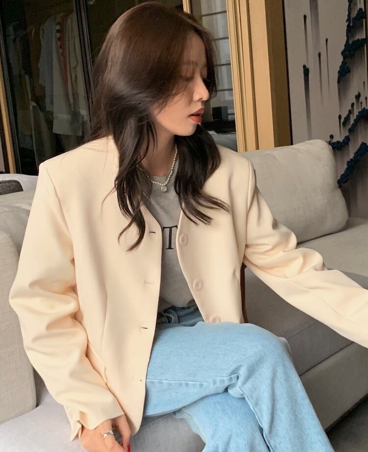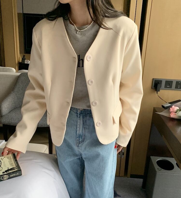 【韓国ファッション】大人可愛い ミニマリストVネックダブルルーズソリッド カラージャケット レディース ロング ソリッドカラー ♡ 韓国50401683462 | パリジェンヌ、韓国系ファッション July