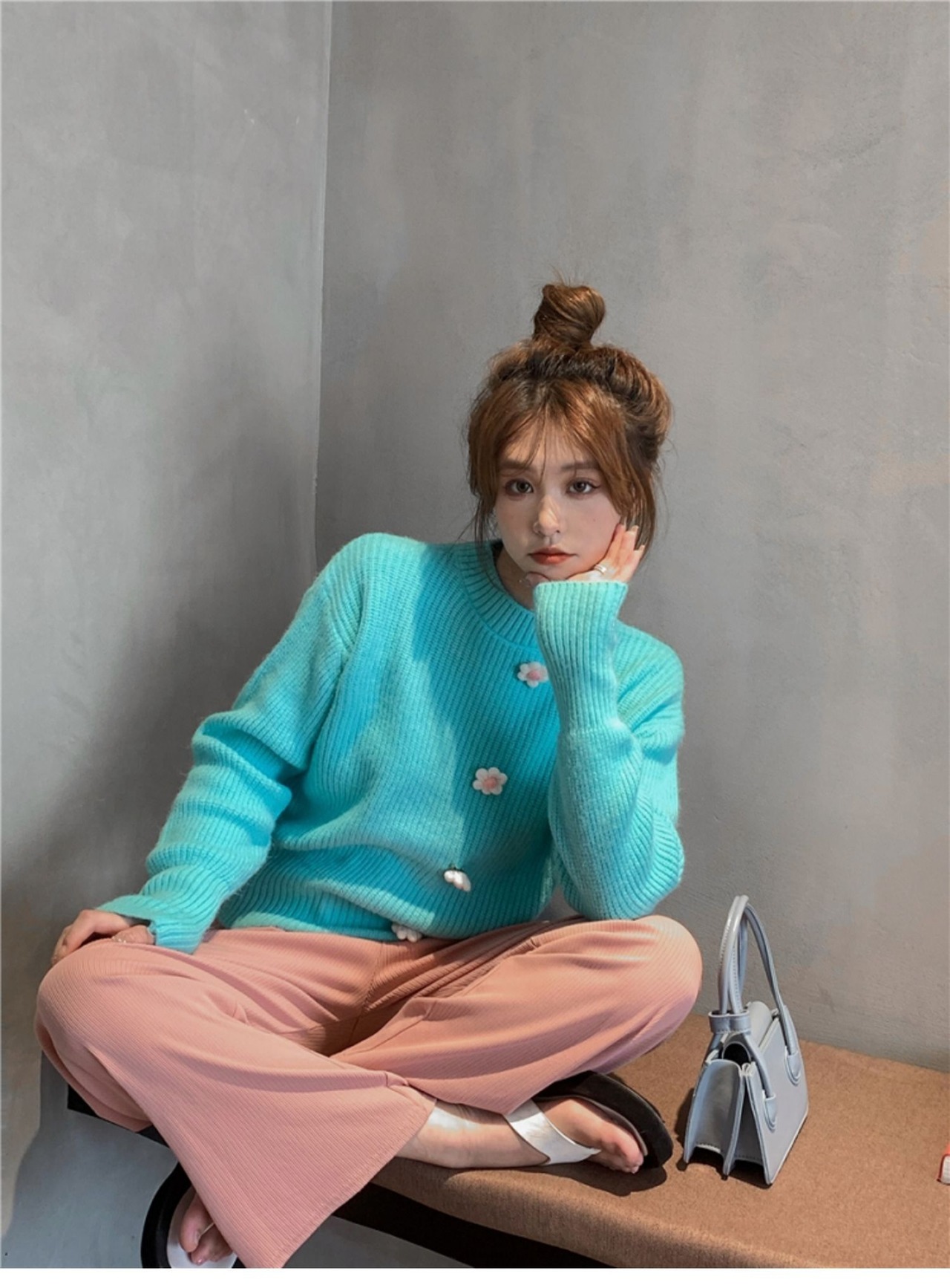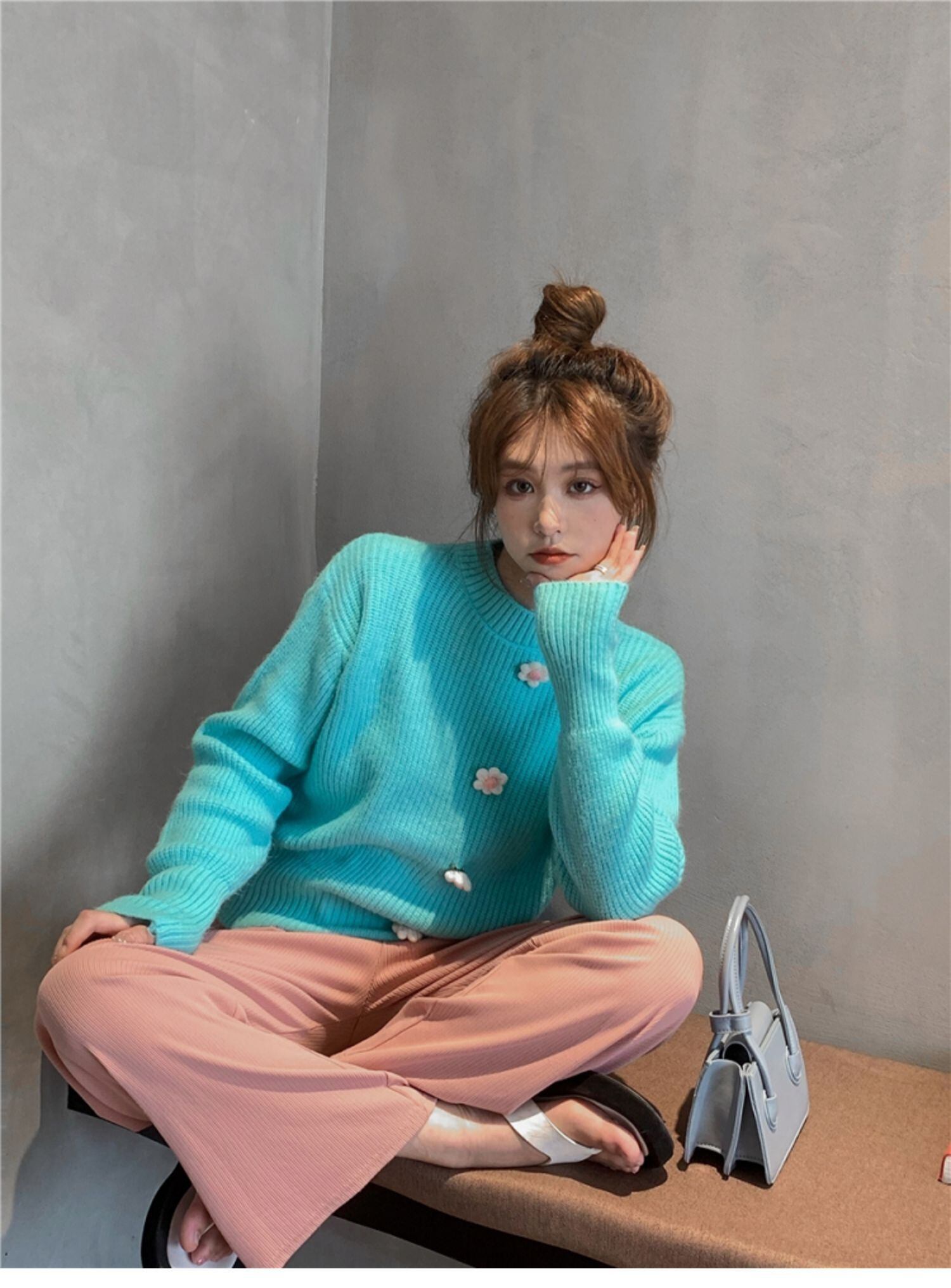 韓国服 Flowerデザイン セーター オータムウィンタートップス ブルー 大人ガーリー スウィート キュート カジュアル 秋物 冬物 グリーン フラワーデザイン ♡ nanfeng73978747331 | パリジェンヌ、韓国系ファッション July
