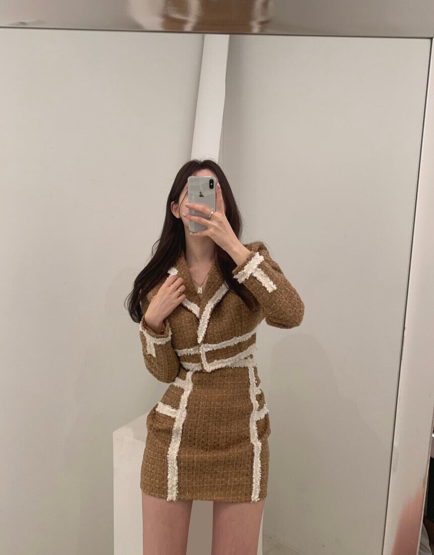 色:黄色のシャツ,黄色のスカート,レッドトップ,赤いスカート