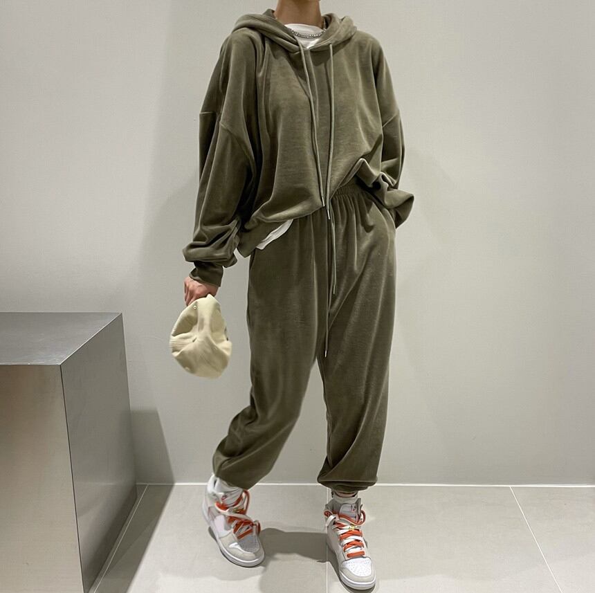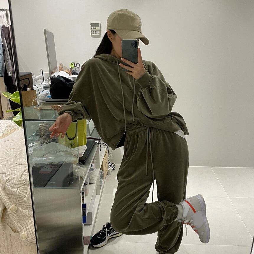 【韓国ファッション】大人可愛い オータムスタイルフードルーズスリーブセーター ストレッチウェストベルベットカジュアルパンツ レディース エラスティック 伸縮 秋物 ♡ 韓国18912484303 | パリジェンヌ、韓国系ファッション July