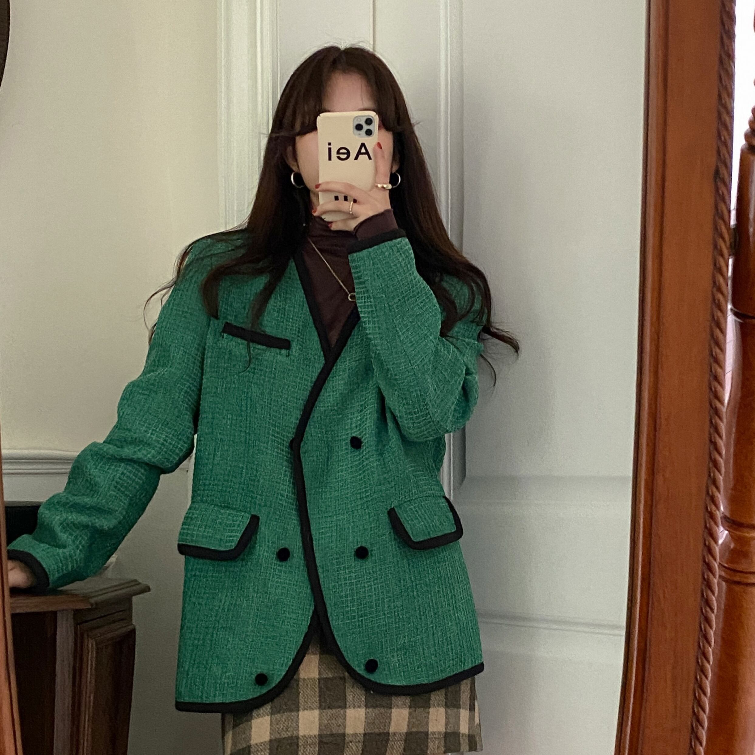 【韓国ファッション】大人可愛い オータムスタンダードVネックカラーダブルブレストルーズジャケット レディース ロング レトロ 秋物 ♡ 韓国61714307157 | パリジェンヌ、韓国系ファッション July