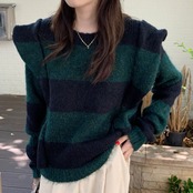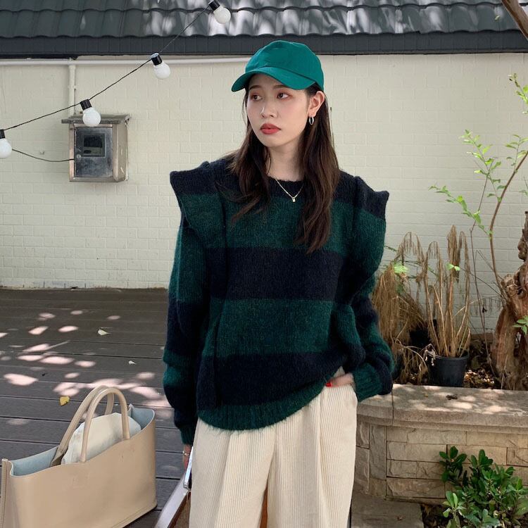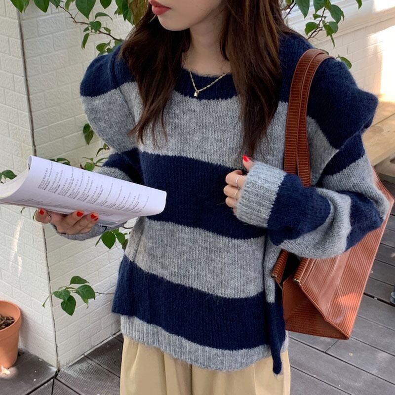 【韓国ファッション】大人可愛い オータムウィンタースタンダードラウンドネックカラーストライププルオーバー ニットセーター レディース ロング レトロ 秋物 冬物 Oネック ステッチ ♡ 韓国65143609252 | パリジェンヌ、韓国系ファッション July