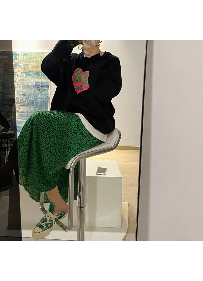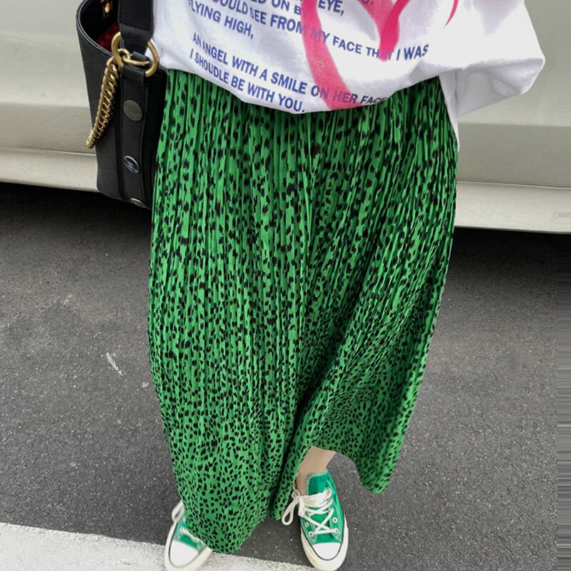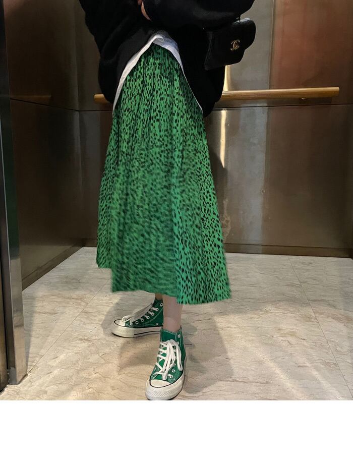 【韓国ファッション】大人可愛い オータムスタンダードストレッチハイウェストウェストグリーンレオパードプリーツスカート ロング レトロ エラスティック 伸縮 秋物 ♡ 韓国63203705530 | パリジェンヌ、韓国系ファッション July