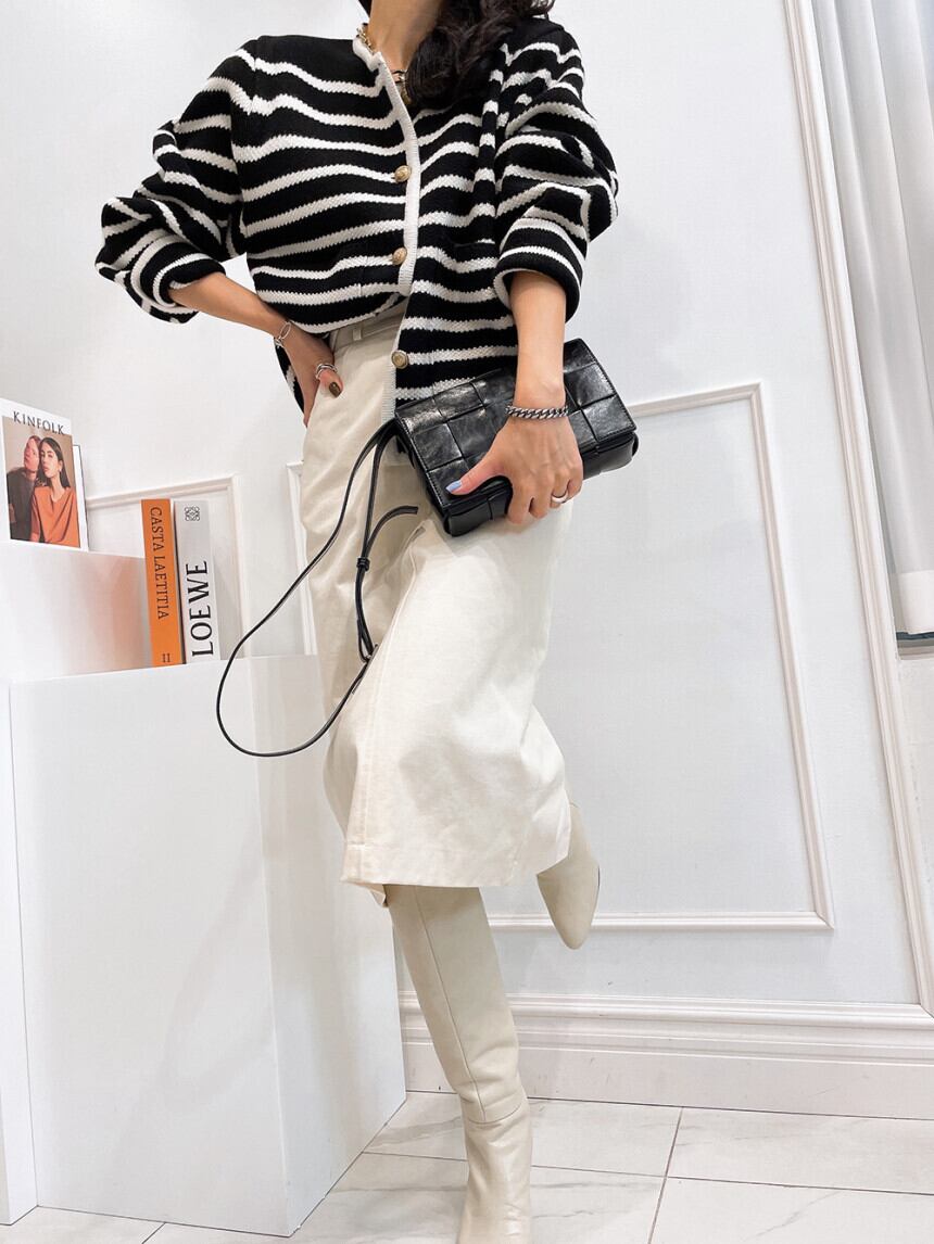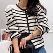 【韓国ファッション】大人可愛い スタンダードラウンドネックカラーストライプルーズニットカーディガンセーター レディース ロング レトロ Oネック ♡ 韓国53100100524 | パリジェンヌ、韓国系ファッション July