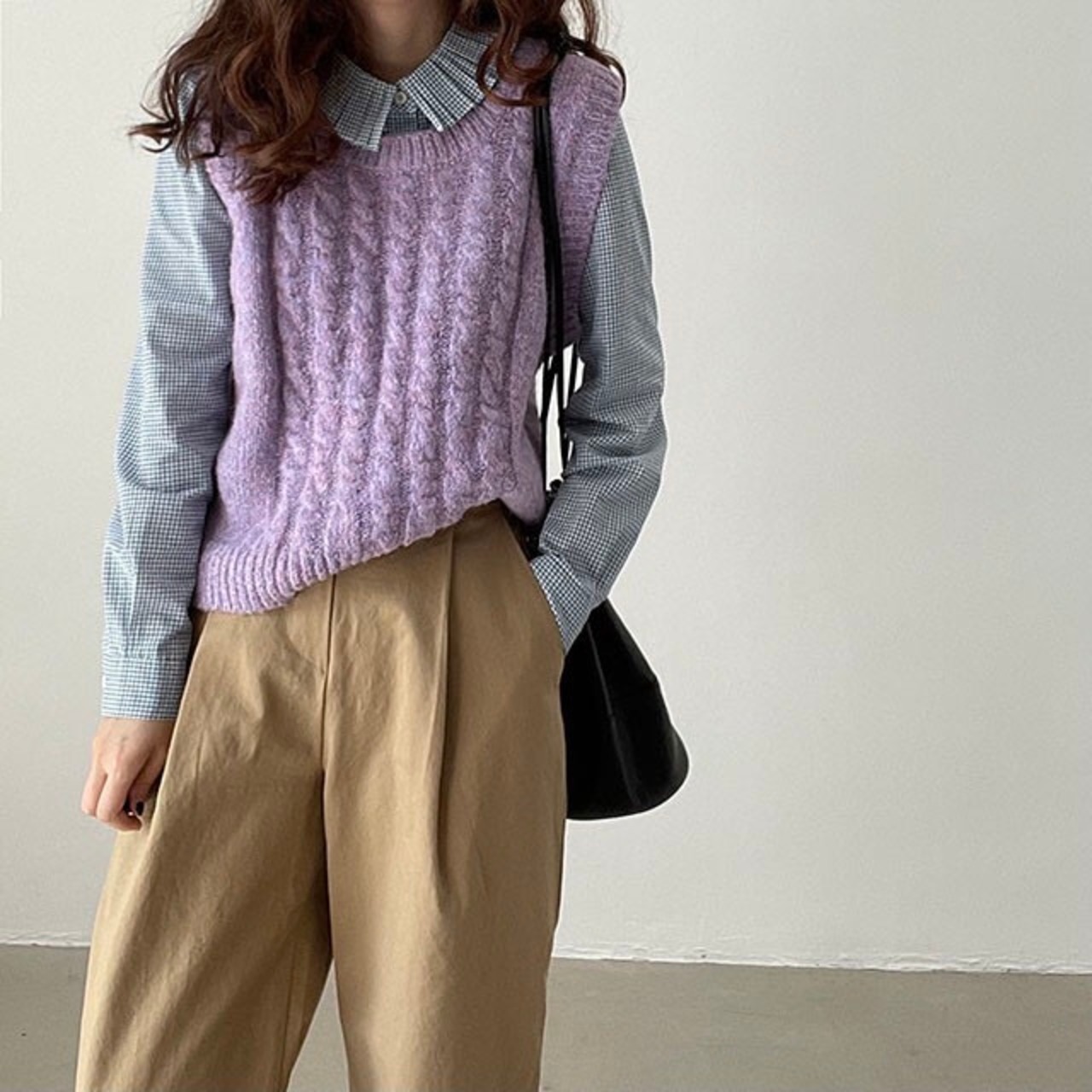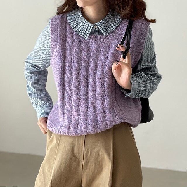 【韓国ファッション】大人可愛い スタンダードサイド格子柄シャツ ラウンドネックパターンニット レトロ Oネック ステッチ ♡ 韓国78819319301 | パリジェンヌ、韓国系ファッション July