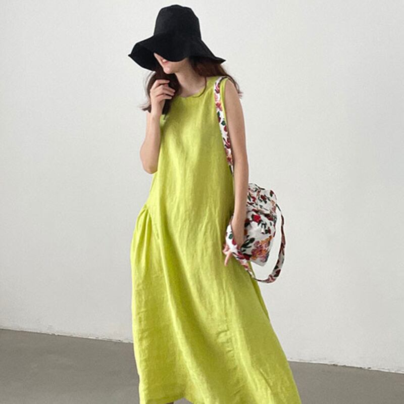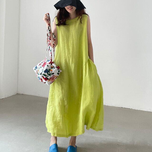 【韓国ファッション】大人可愛い マスタードイエローラウンドネックカジュアルルーズノースリーブドレス ロングスカート Oネック ♡ 韓国33576981240 | パリジェンヌ、韓国系ファッション July
