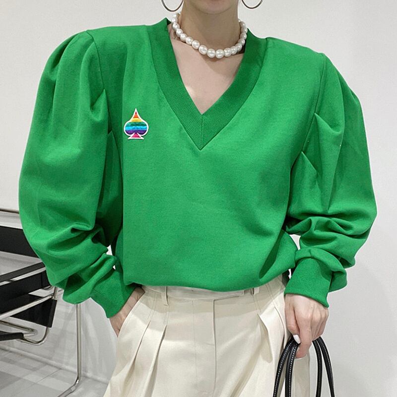 【韓国ファッション】大人可愛い オータムウィンタースタイルVネックハート刺繍ルーズカジュアルベルベットセーター レディース ロング 秋物 冬物 ♡ 韓国91899473248 | パリジェンヌ、韓国系ファッション July
