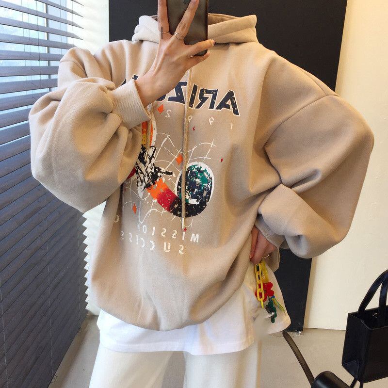 【韓国ファッション】大人可愛い オータムウィンターギャザーフードプリントルーズスリーブプルオーバー セーター レディース 秋物 冬物 ♡ 韓国22596543226 | パリジェンヌ、韓国系ファッション July