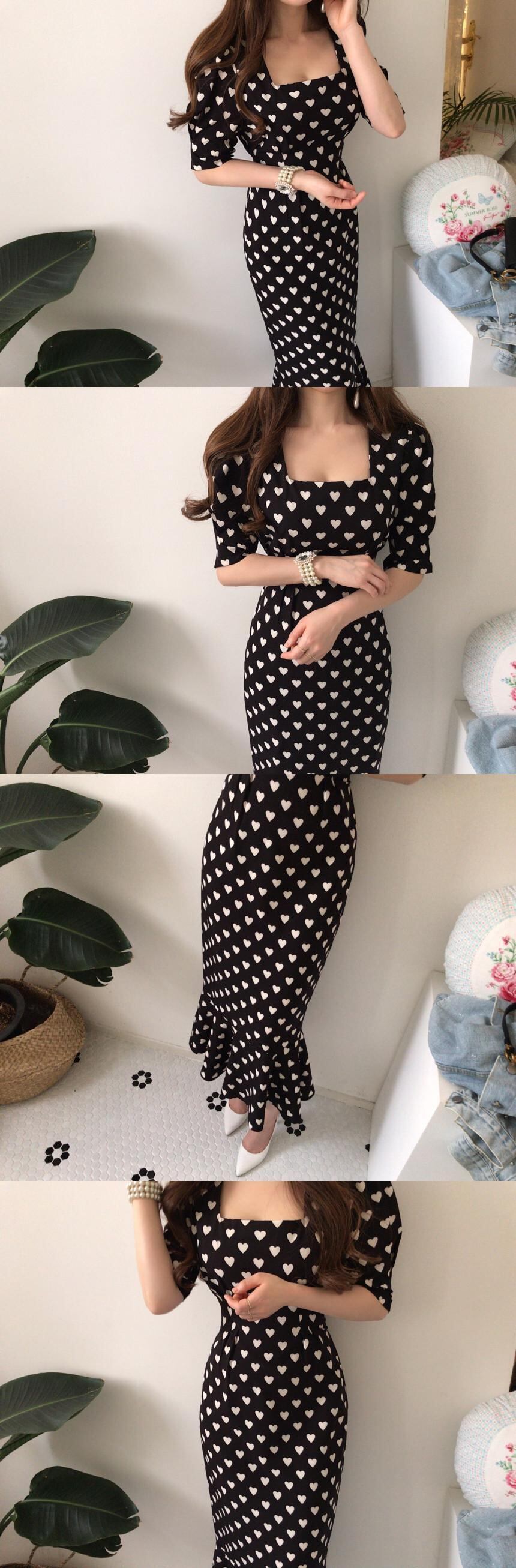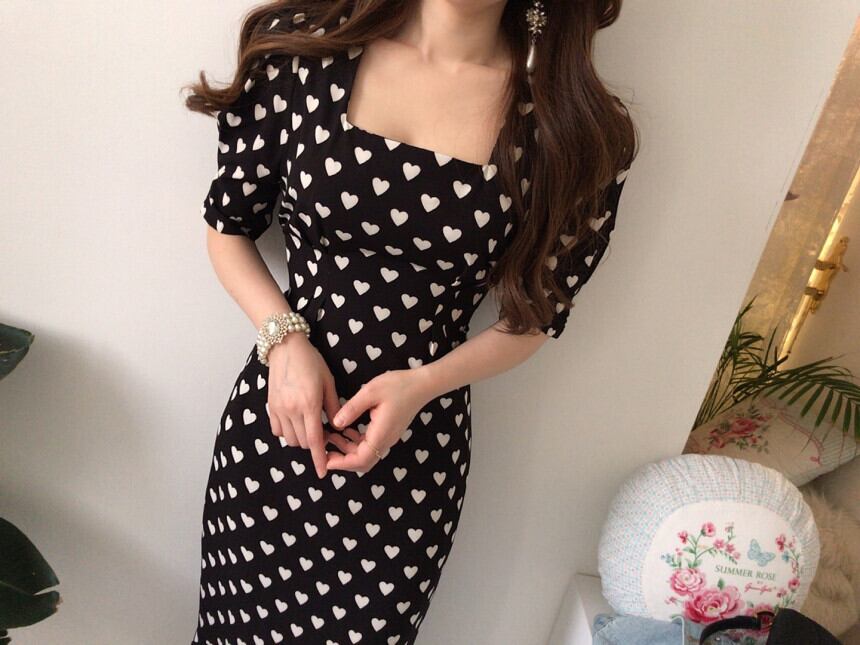 【韓国ファッション】大人可愛い スタンダードプリント柄スリムロング半袖スリーブドレス ショート レトロ ハーフスリーブ スクウェア ♡ 韓国70464186567 | パリジェンヌ、韓国系ファッション July