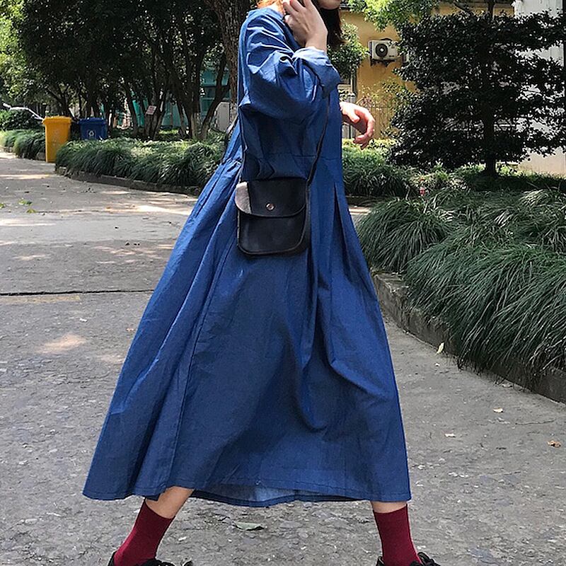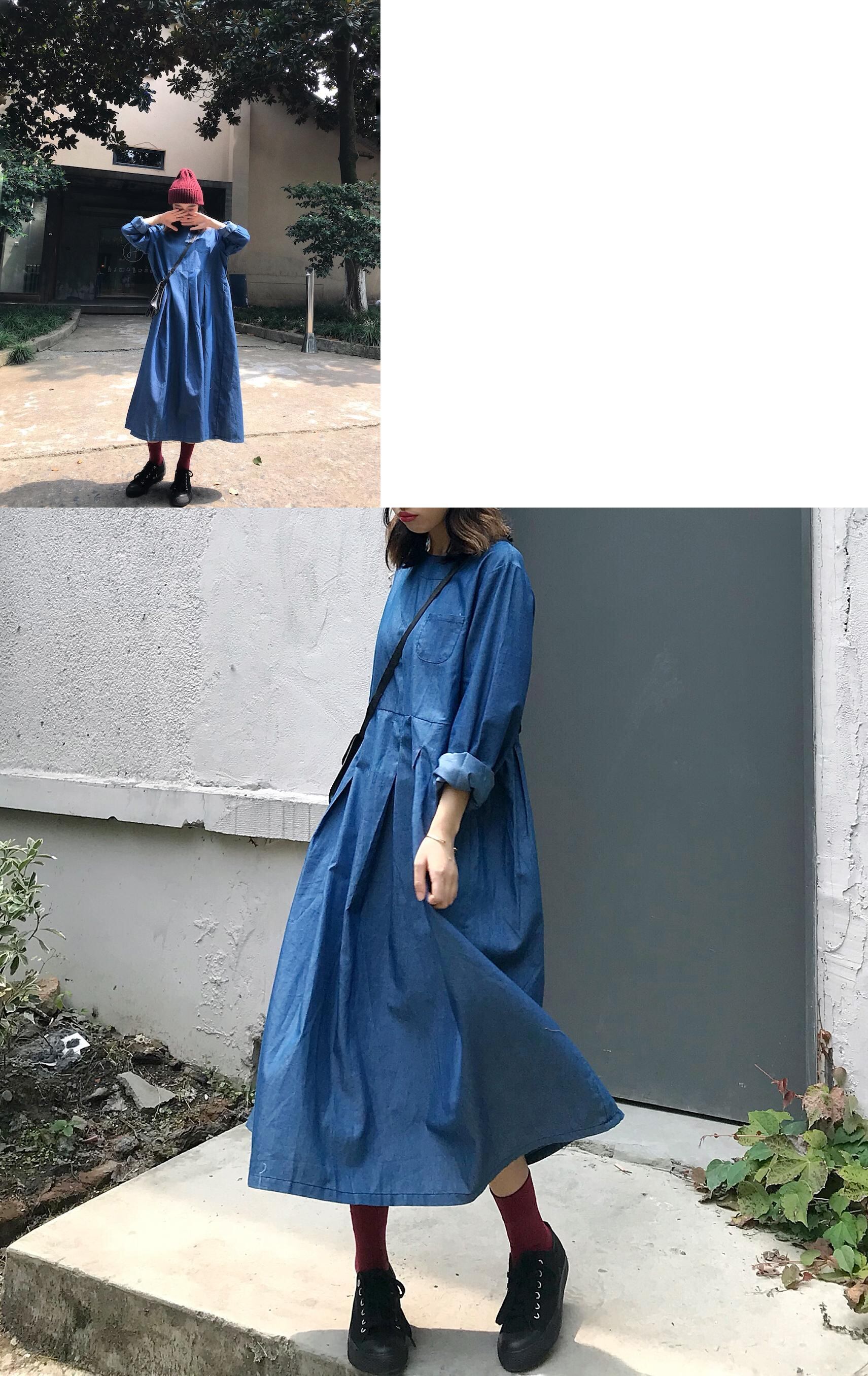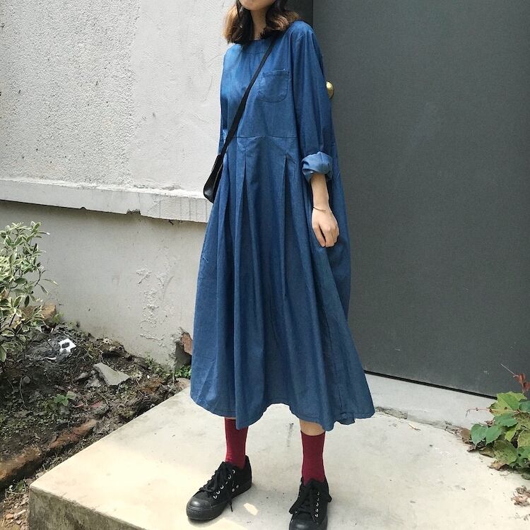 【韓国ファッション】大人可愛い スタンダードラウンドネックシングルポケットプリーツハイウェストウェストルーズドレス ロングスカート レトロ Oネック ♡ 韓国33992485407 | パリジェンヌ、韓国系ファッション July