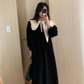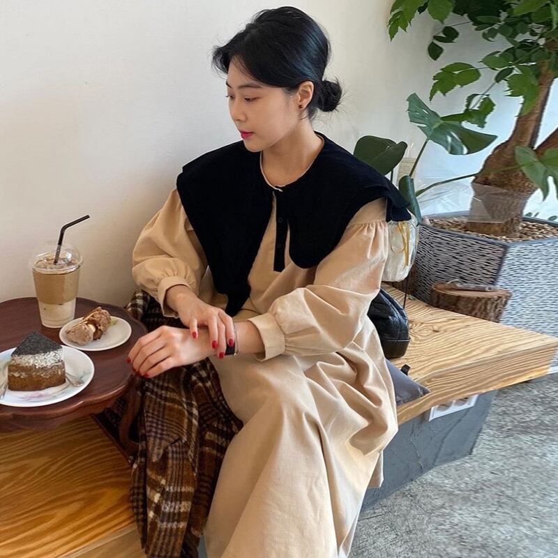 【韓国ファッション】大人可愛い オータムウィンタースタンダードアシンメトリーカラールーズスリーブドレス ロングスカート ランタンスリーブ レトロ 秋物 冬物 ♡ 韓国82607931261 | パリジェンヌ、韓国系ファッション July