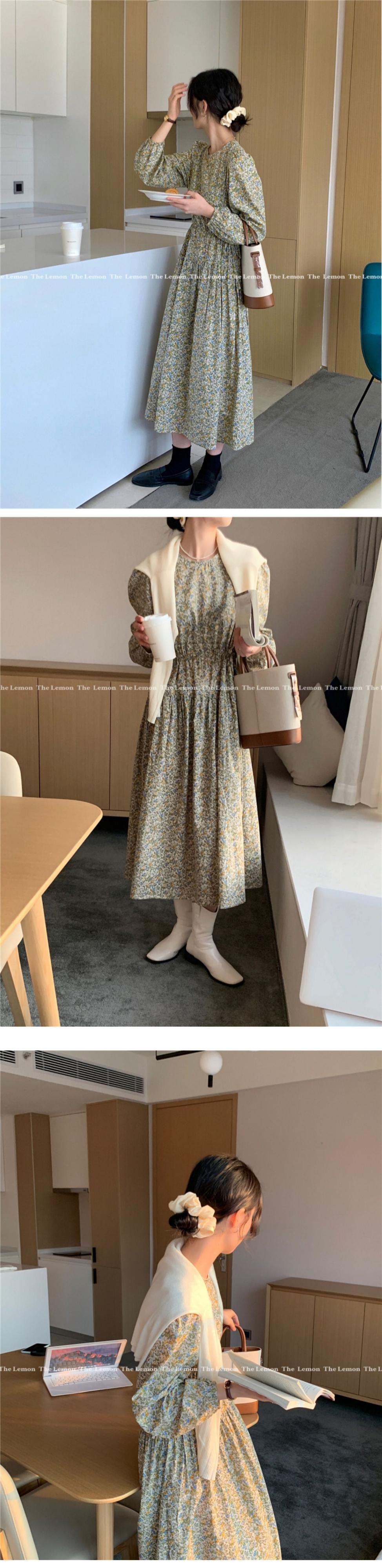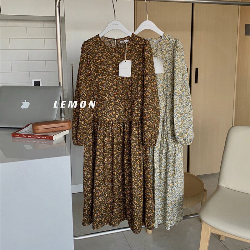 韓国服 オータムラウンドネックフローラルドレス ハイウェストウェストシフォンロングスカート 秋物 花柄 Oネック ♡ nanfeng87384637250 | パリジェンヌ、韓国系ファッション July