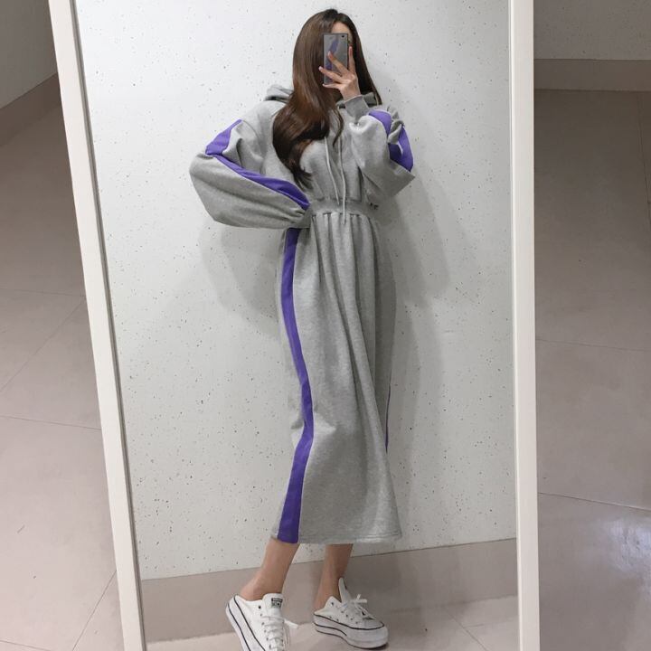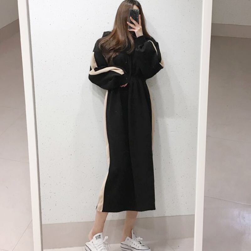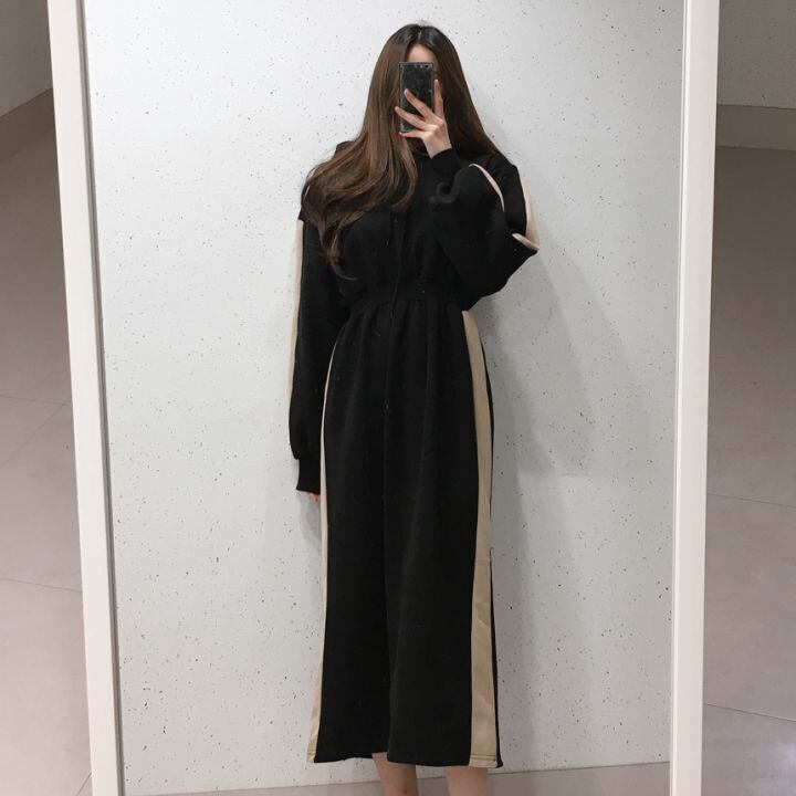 【韓国ファッション】大人可愛い カジュアルフードカラーハイウェストウェスト薄手ベルベットセーター ドレス レディース ステッチ ♡ 韓国30111984357 | パリジェンヌ、韓国系ファッション July