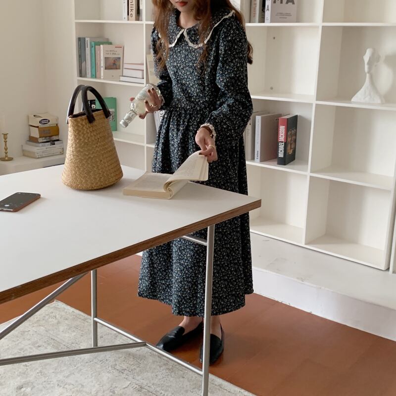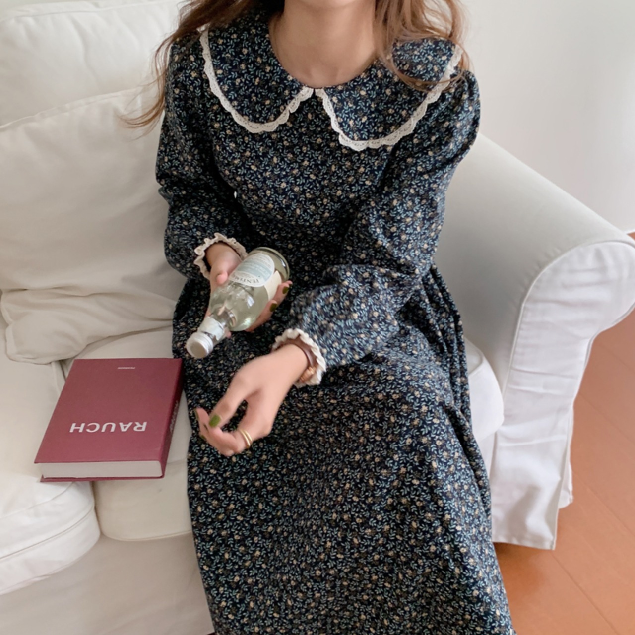 【韓国ファッション】大人可愛い オータムウィンタースタンダードレースカラールーズスリーブフローラルドレス レトロ 秋物 冬物 花柄 ♡ 韓国2471774792 | パリジェンヌ、韓国系ファッション July