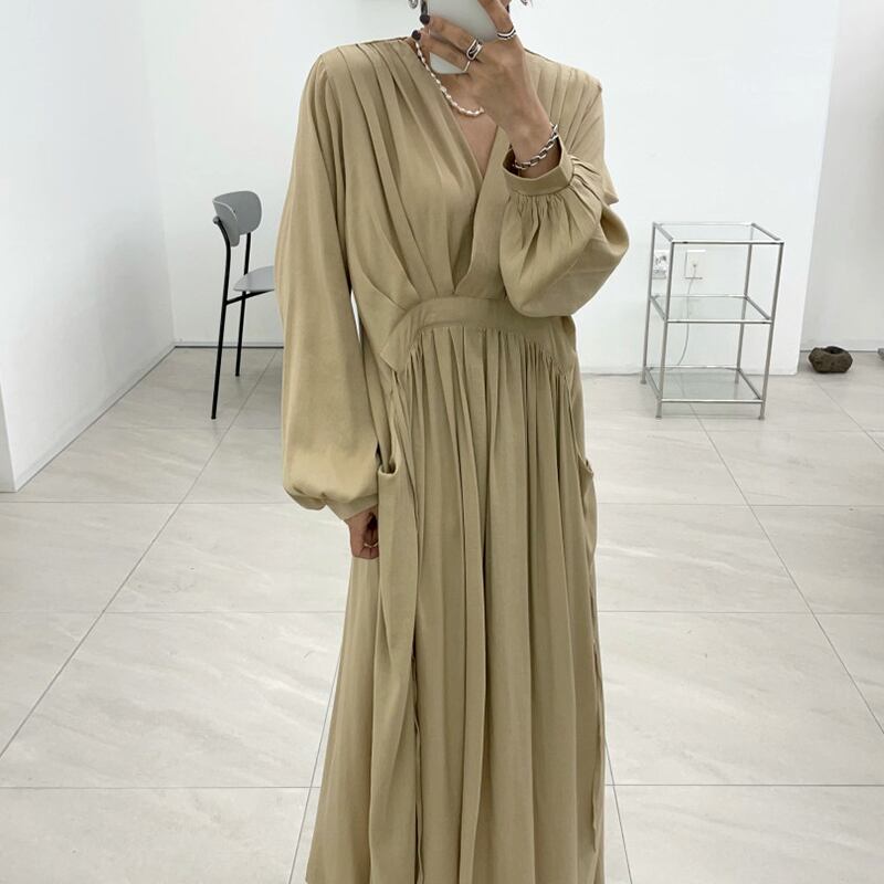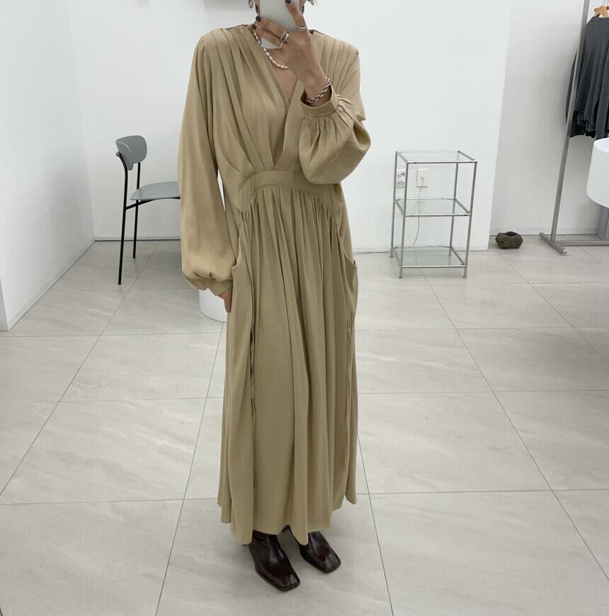 【韓国ファッション】大人可愛い オータムスタンダードVネックルーズスリーブドレス ロングスカート レトロ エレガント 秋物 ♡ 韓国38188698260 | パリジェンヌ、韓国系ファッション July