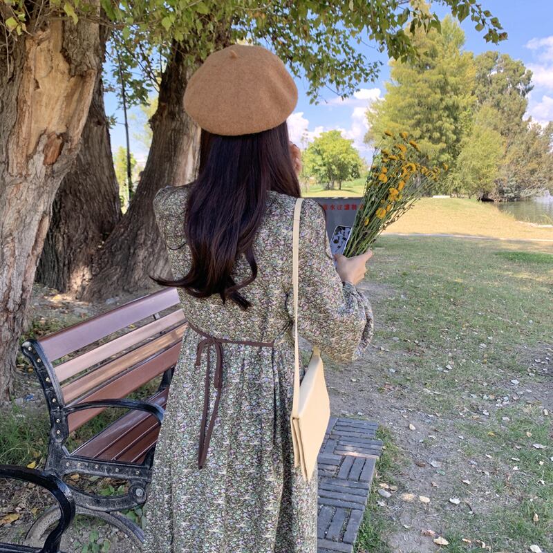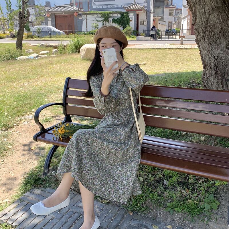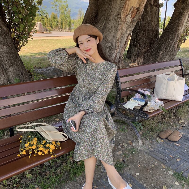 【韓国ファッション】大人可愛い オータムスタンダードラウンドネックプリーツウェストスリーブフローラルドレス レトロ 秋物 花柄 Oネック ♡ 韓国60898767468 | パリジェンヌ、韓国系ファッション July