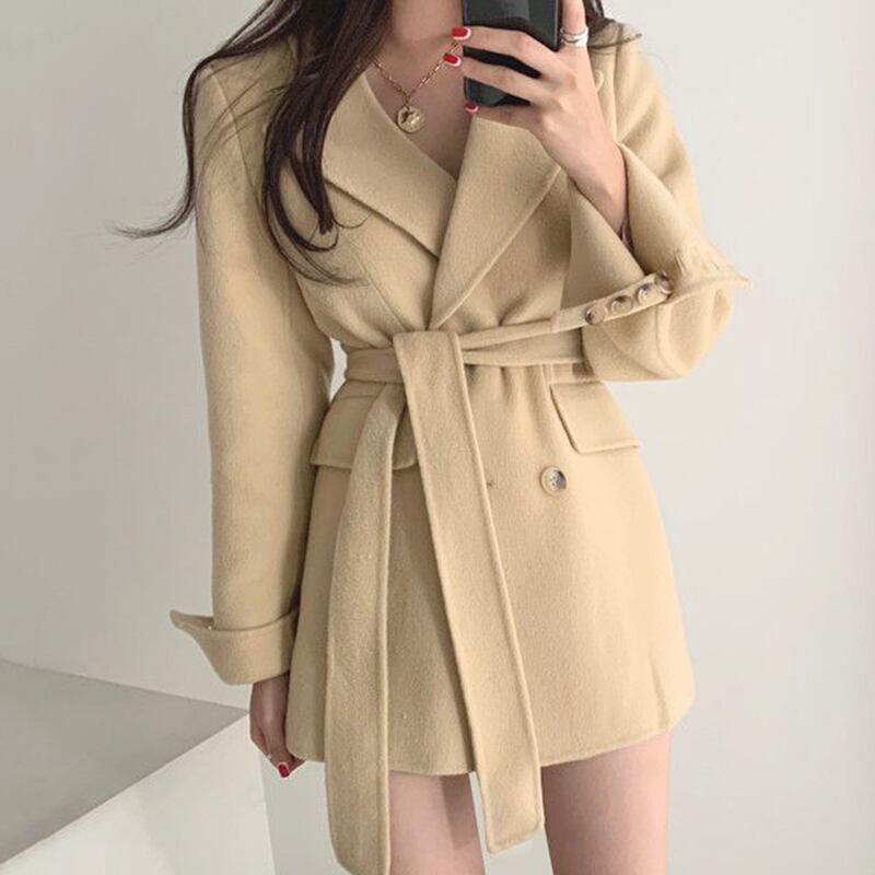 【韓国ファッション】大人可愛い スタンダードカラーダブルブレストストラップ ウェストルーズコート レディース ロング レトロ ♡ 韓国96586663230 | パリジェンヌ、韓国系ファッション July