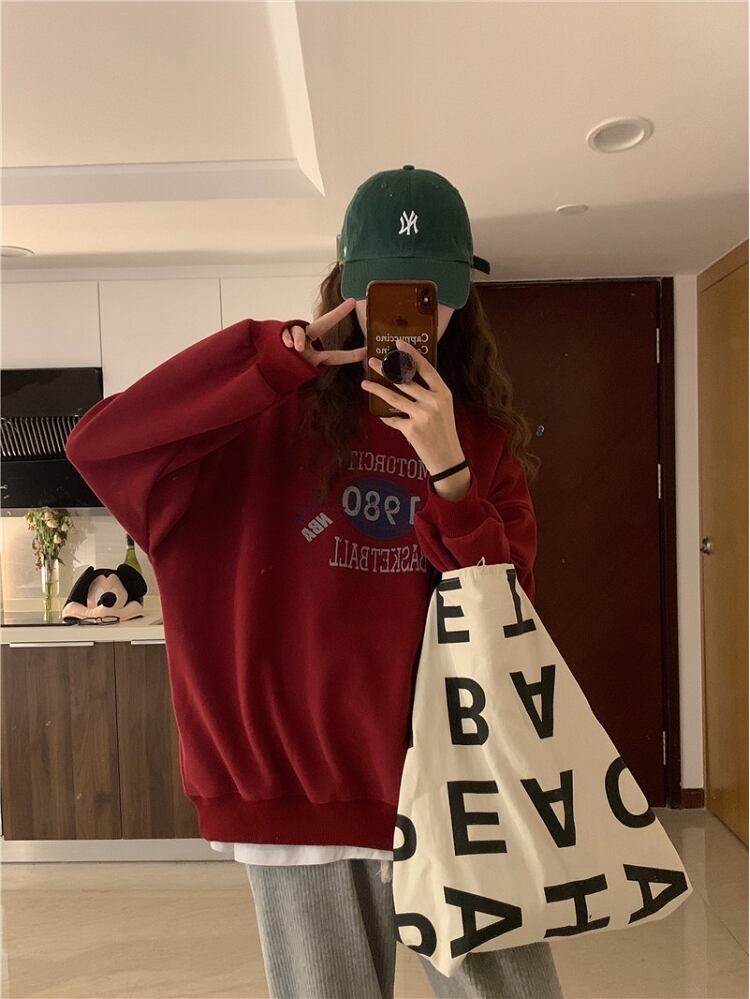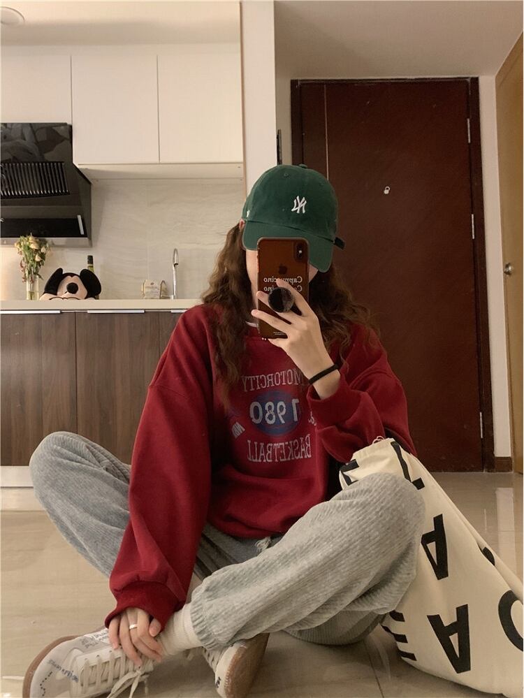 韓国服 ラウンドネックプルオーバー プリント柄ベルベットセーター レディースカジュアルルーズブラウス ジャケット Oネック ♡ nanfeng52190330849 | パリジェンヌ、韓国系ファッション July