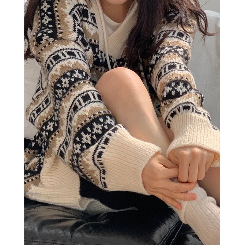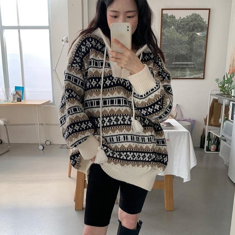 韓国服 スタンダードストライプフードセーター レディースオータムウィンターウールVネックニット レトロ 秋物 冬物 ♡ nanfeng7687727827 | パリジェンヌ、韓国系ファッション July