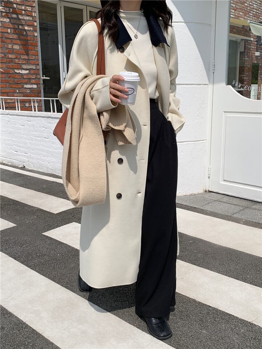 【韓国ファッション】大人可愛い オータムウィンターホワイトカラーダブルブレストルーズロングコート レディース 秋物 冬物 ♡ 韓国94513583336 | パリジェンヌ、韓国系ファッション July