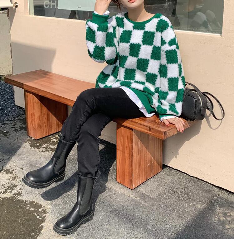 韓国服 オータムウィンターラウンドネックブラックホワイトウールルーズセーター レディース 秋物 冬物 Oネック ステッチ ♡ nanfeng84814266207 | パリジェンヌ、韓国系ファッション July