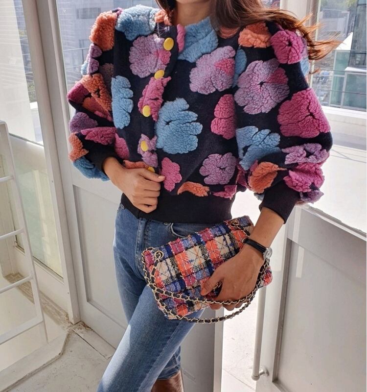 韓国服 カラーカーディガンスタンダードラウンドネックスリーブジャケット コットン レトロ Oネック フラワーデザイン ♡ nanfeng63174390840 | パリジェンヌ、韓国系ファッション July