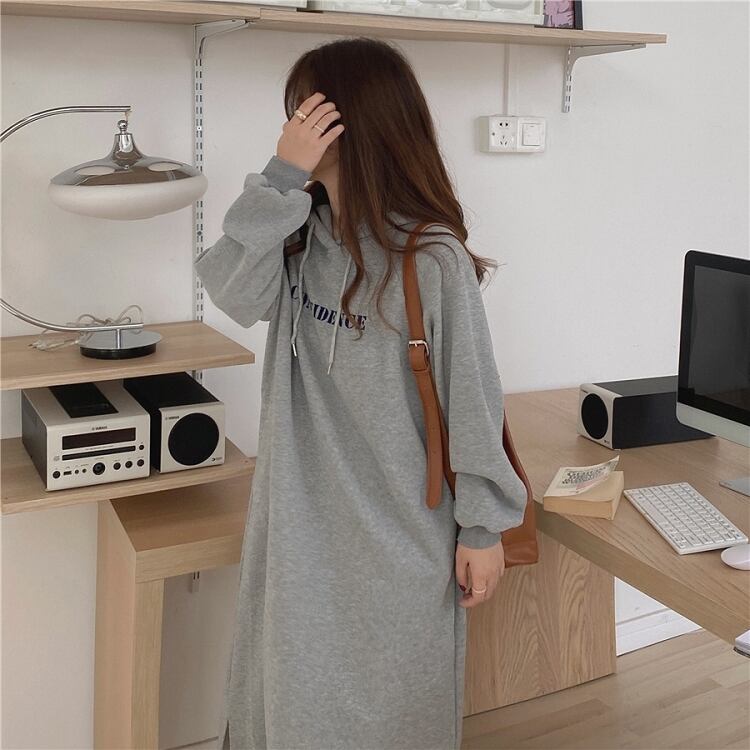韓国服 プリント柄フードスウェット スカート レディースオータムウィンタールーズカジュアルロングベルベットドレス 秋物 冬物 ♡ nanfeng20614688322 | パリジェンヌ、韓国系ファッション July