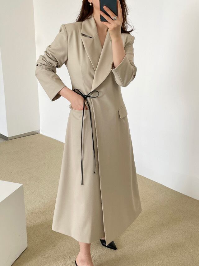 【韓国ファッション】大人可愛い オータムウィンタースタンダードカラーサイドレースウェストダブルポケットロングジャケット レディース レトロ 秋物 冬物 ♡ 韓国62555294913 | パリジェンヌ、韓国系ファッション July