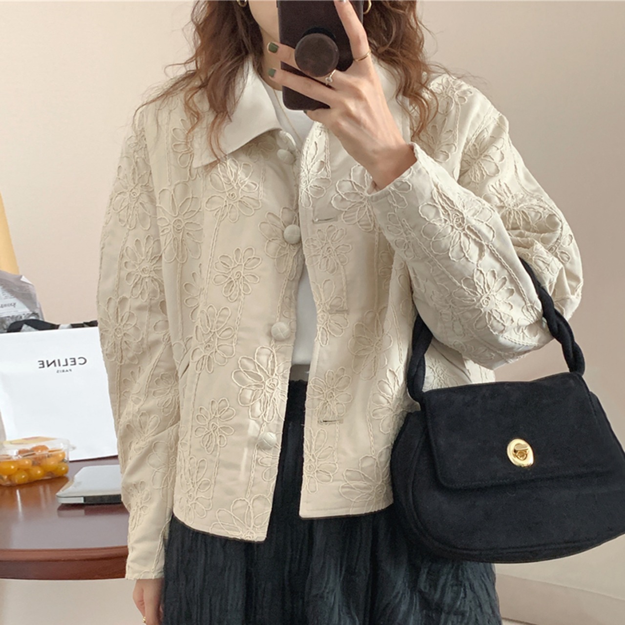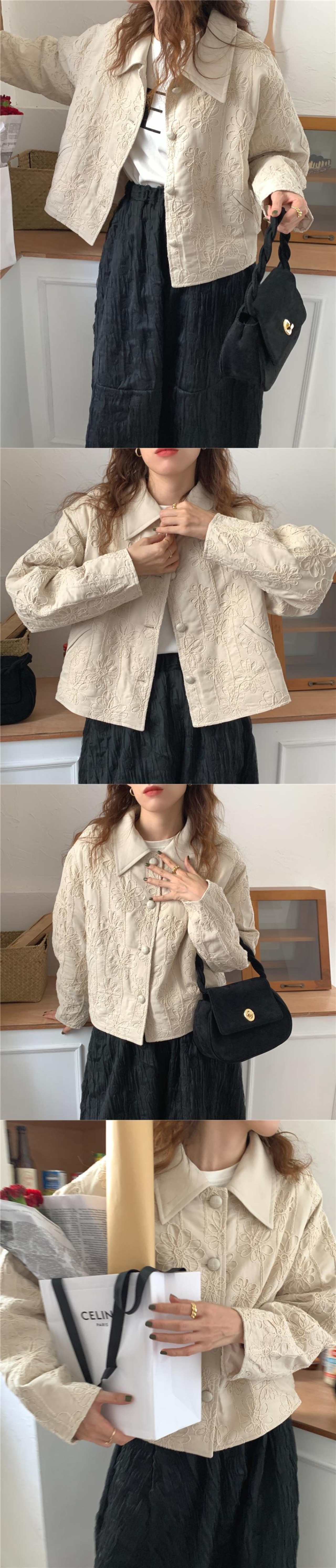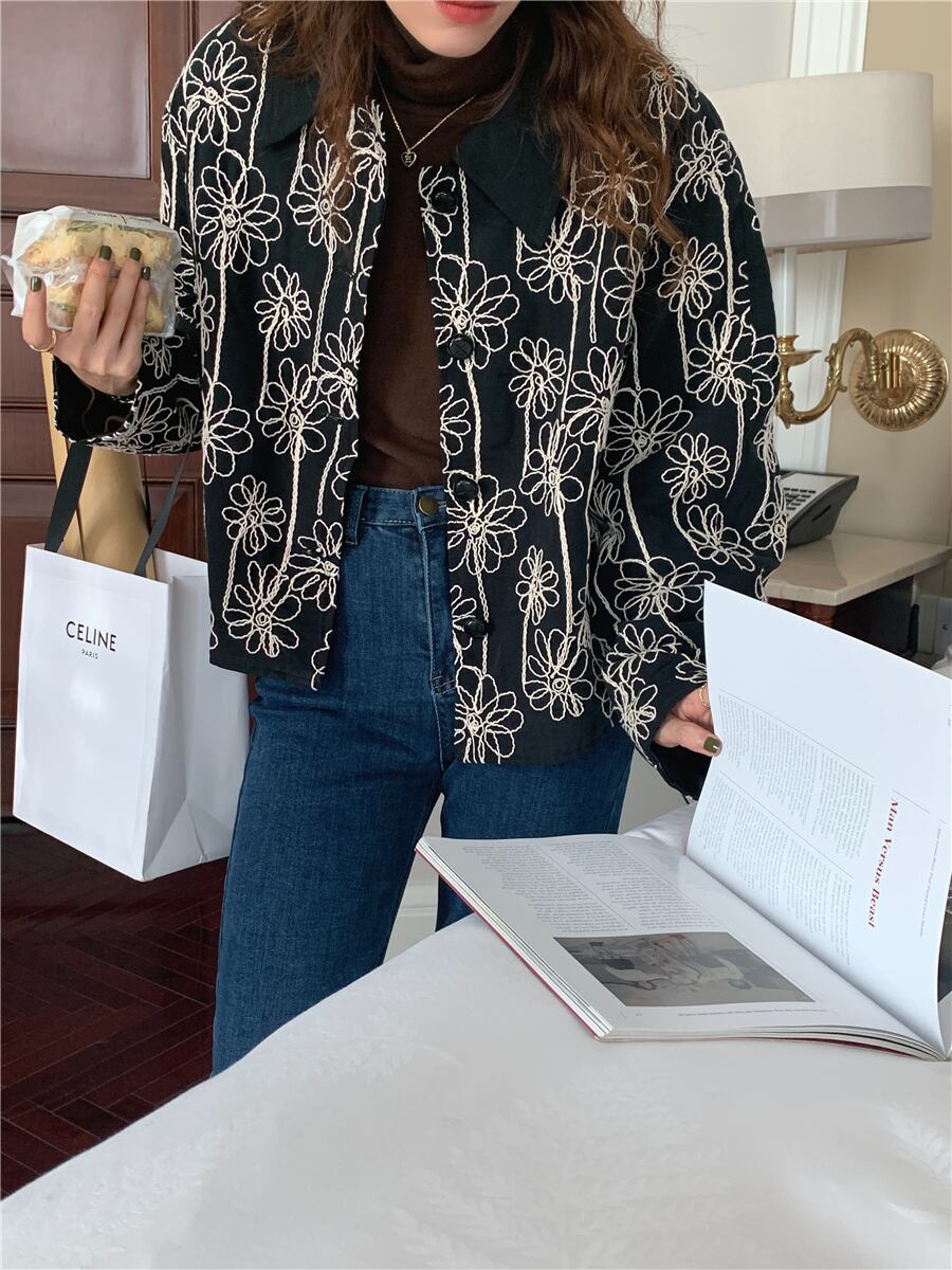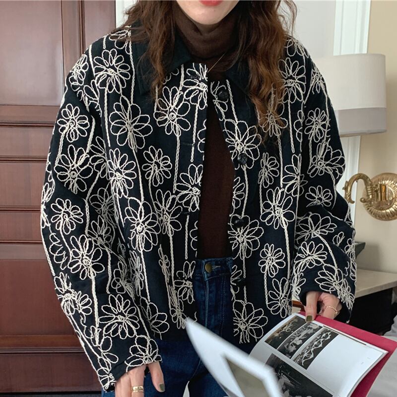 【韓国ファッション】大人可愛い オータムウィンタースタンダード刺繍ルーズジャケット ロング コットン レトロ 秋物 冬物 フラワーデザイン ステッチ ♡ 韓国79576628960 | パリジェンヌ、韓国系ファッション July