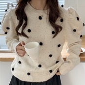 【韓国ファッション】大人可愛い オータムウィンターラウンドネックファールーズスリーブプルオーバー ニットセーター レディース 秋物 冬物 Oネック ♡ 韓国51998118384 | パリジェンヌ、韓国系ファッション July